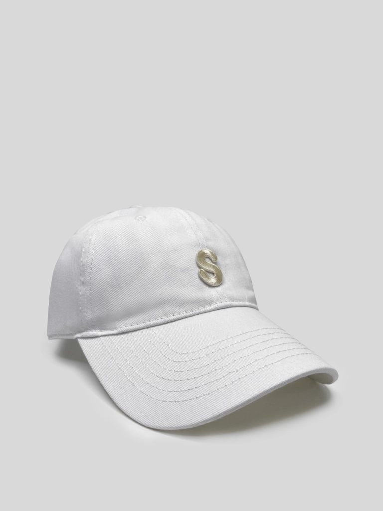 Кепка из хлопка однотонная белого цвета с логотипом S спереди...