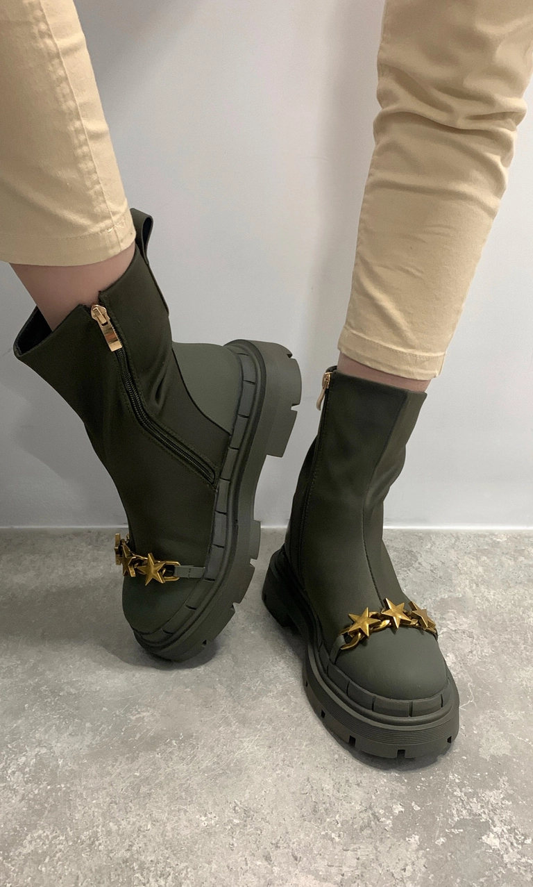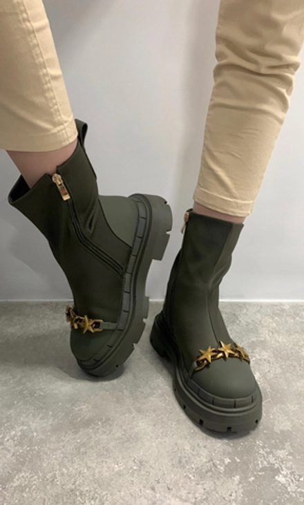 - Хитом сезона стилисты называют модные ботинки и сапоги различной высоты, выполненные в стиле «милитари». Оказалось, что они неожиданно удачно дополняют не только такие привычные стили как спорт-шик или стрит-стайл. Нарочито грубый фасон на толстой рифленой подошве вполне гармонично сочетается с мягкими женственными образами, так что теперь модницы могут носить их как с брюками, джинсами и спортивным костюмом, так и с юбкой, и даже с легким расклешенным платьем. Характерная деталь этой коллекции – застежка в виде шнуровки, молнии или массивной пряжки. Иногда эти виды застежек комбинируются, придавая обуви не только оригинальный внешний вид, но и повышенную практичность.