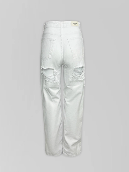2.     Джинсы-мамы (Mom Jeans): Название «джинсы-мамы» возникло в 1990-х и указывало на модель, которая была популярна среди женщин более старшего возраста. Они характеризуются высокой посадкой, прямым или слегка зауженным кроем и часто изготавливаются из более плотного денима. Эти джинсы – символ комфорта и непринужденности. Сегодня модель переживает свое возрождение, став модным трендом среди молодежи. Джинсы-мамы прекрасно сочетаются с обтягивающими топами или кроп-топами, создавая игривый контраст с их свободным кроем.