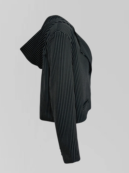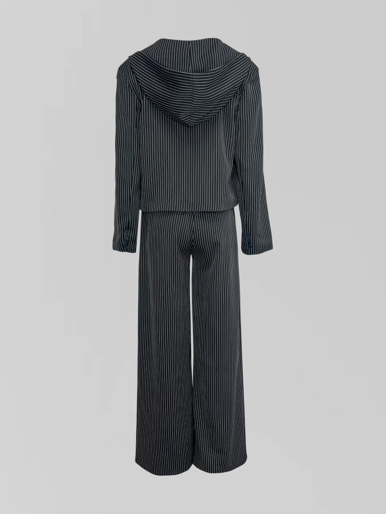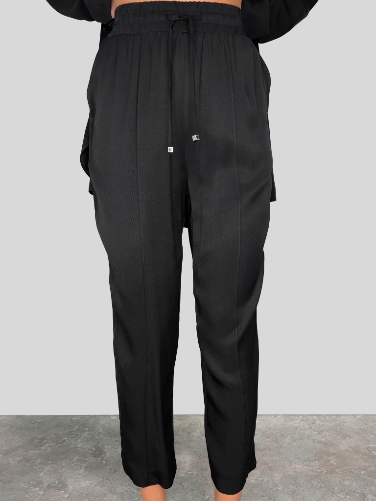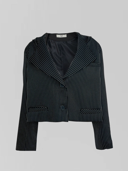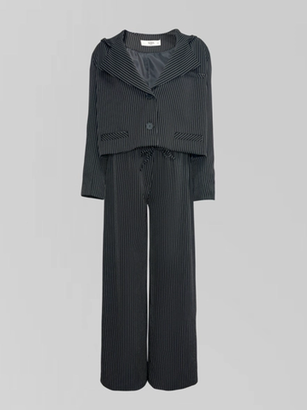 · Тем, кто предпочитает спортивный стиль, черный костюм из плотного трикотажа наверняка придется по вкусу. Короткий пиджак в спортивном стиле и свободные прямые брюки, однотонные или с тонкими лампасами – практичный выбор для женщин, ведущих активный образ жизни.
