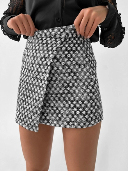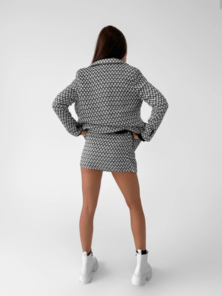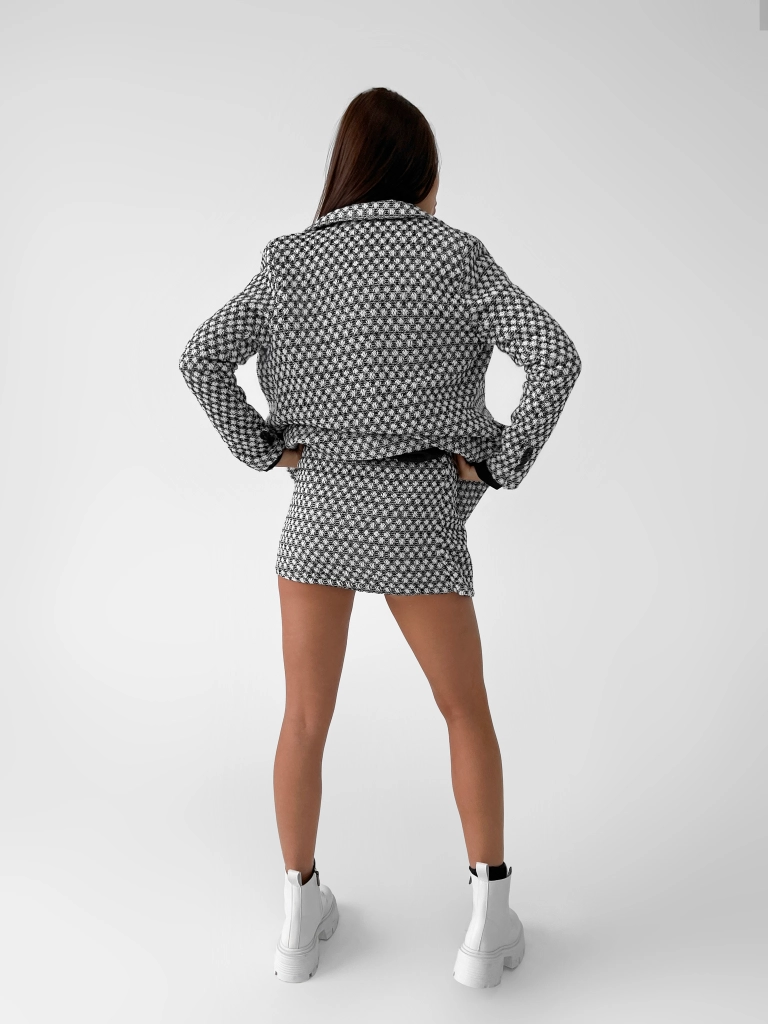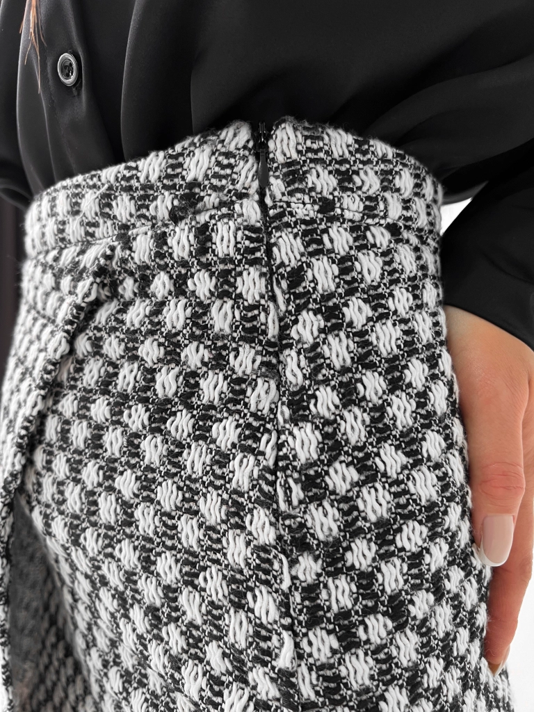 · Новинка сезона – черно-белый женский костюм, верхняя и нижняя часть которого представляет собой выразительный контраст, притягивающий взгляды. Кроме того, стильно выглядит темный комплект с отдельными белыми элементами. Это может быть отложной воротник, манжеты, клапаны накладных карманов на пиджаке, узкие полосы на юбке или брюках.