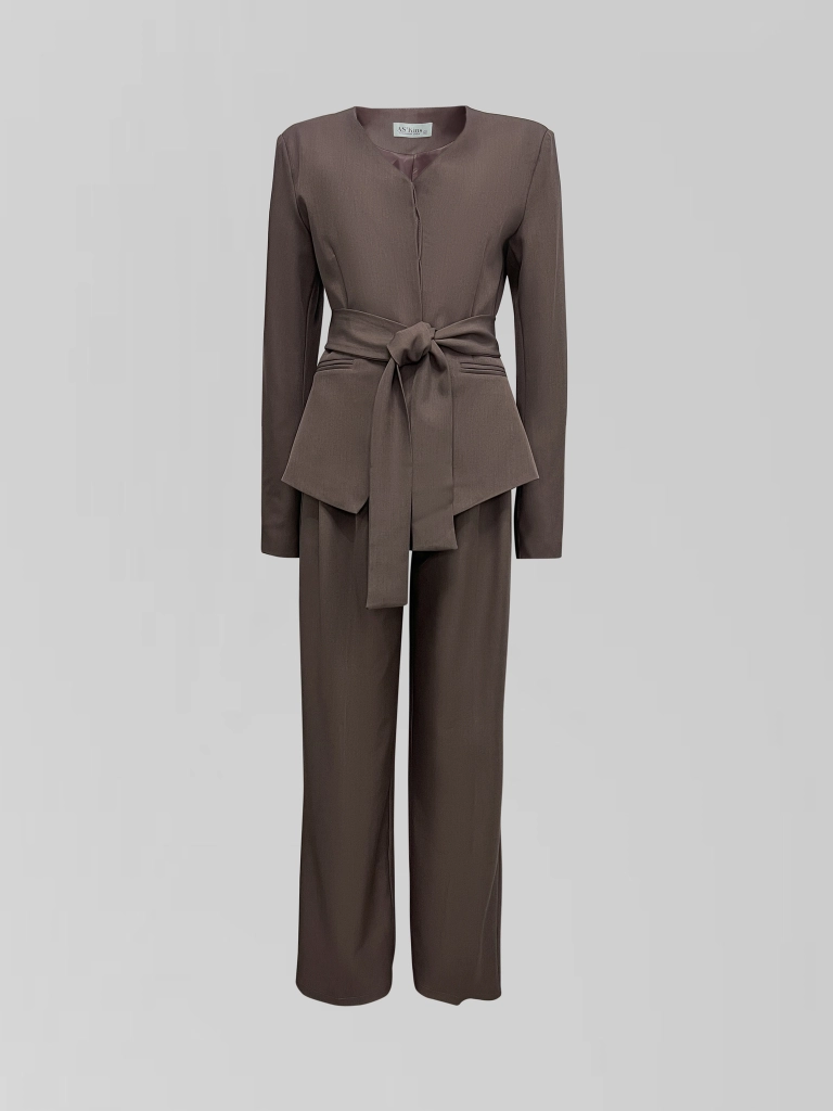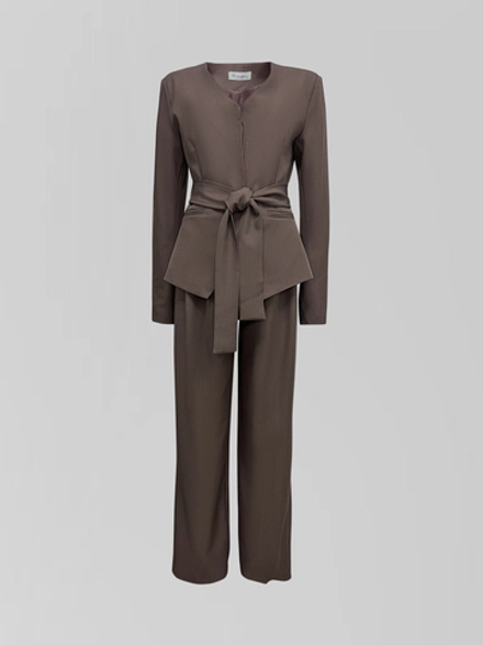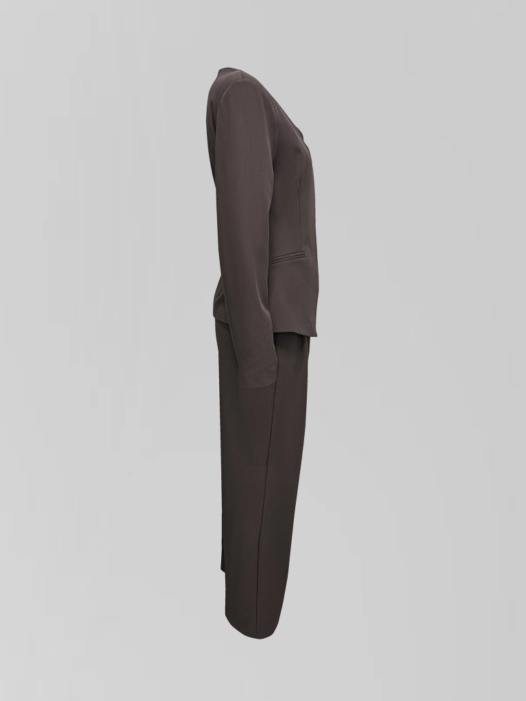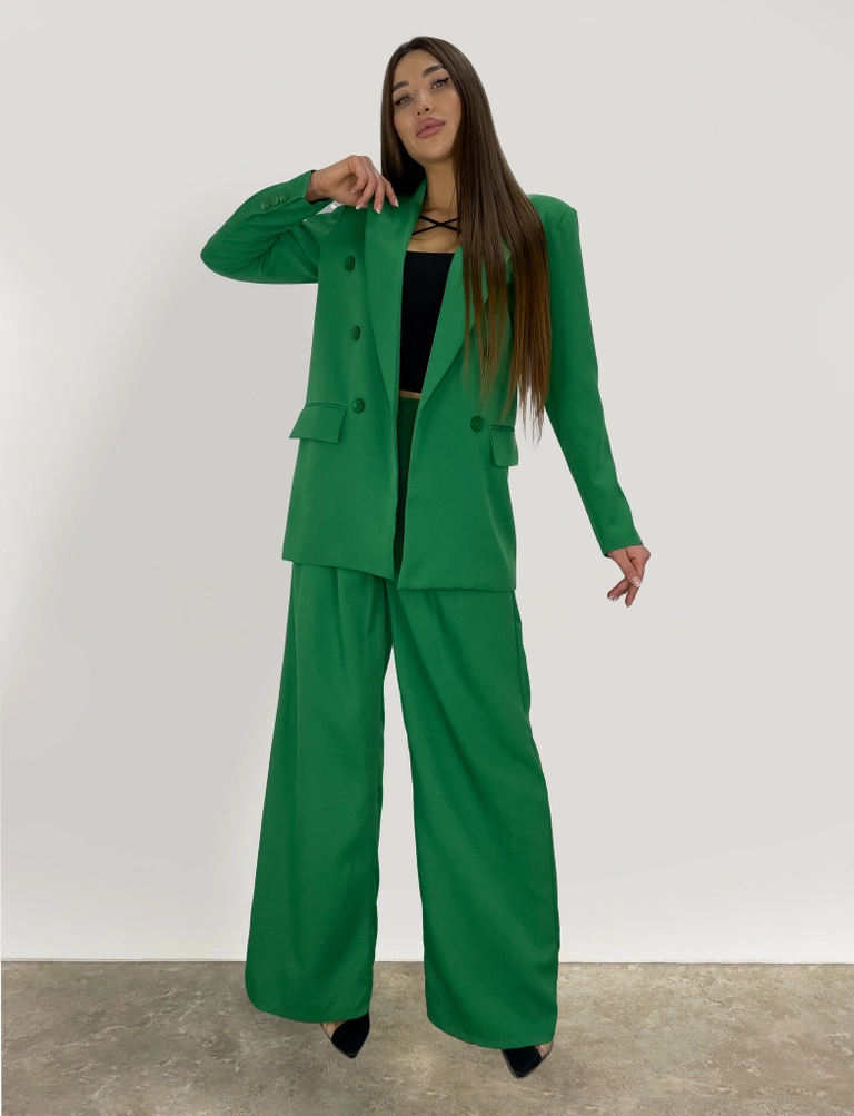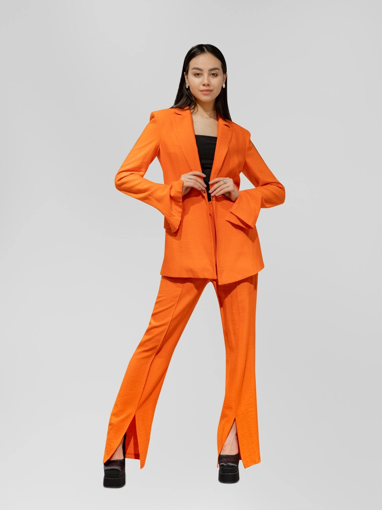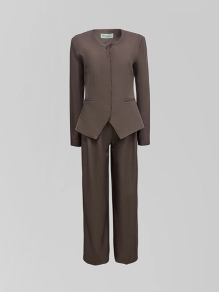 Как и многие другие предметы женского гардероба, этот вид одежды со временем вышел за рамки рабочей обстановки. Родоначальником офисного дресс-кода стал деловой брючный костюм, заимствованный из мужского гардероба. Первые модели мало отличались от мужских, но со временем линии брюк, пиджаков и жакетов стали более плавными и женственными.