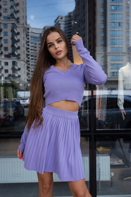 Женский костюм двойка из топа с длинным рукавом и плиссированной...