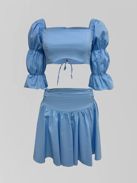 Любимый многими девушками летний костюм с юбкой и топом порадует их разнообразием фасонов, расцветок и принтов. В тренде яркие, солнечные краски: все оттенки желтого, оранжевого, красного, а также небесно-голубой, нежно-розовый, сиреневый. Что касается принтов, то здесь снова лидирует костюм с юбкой в горошек, который, по мнению стилистов, должен быть в гардеробе каждой девушки.