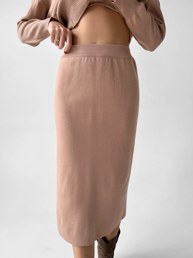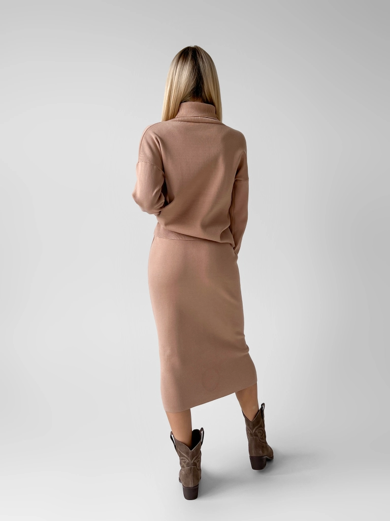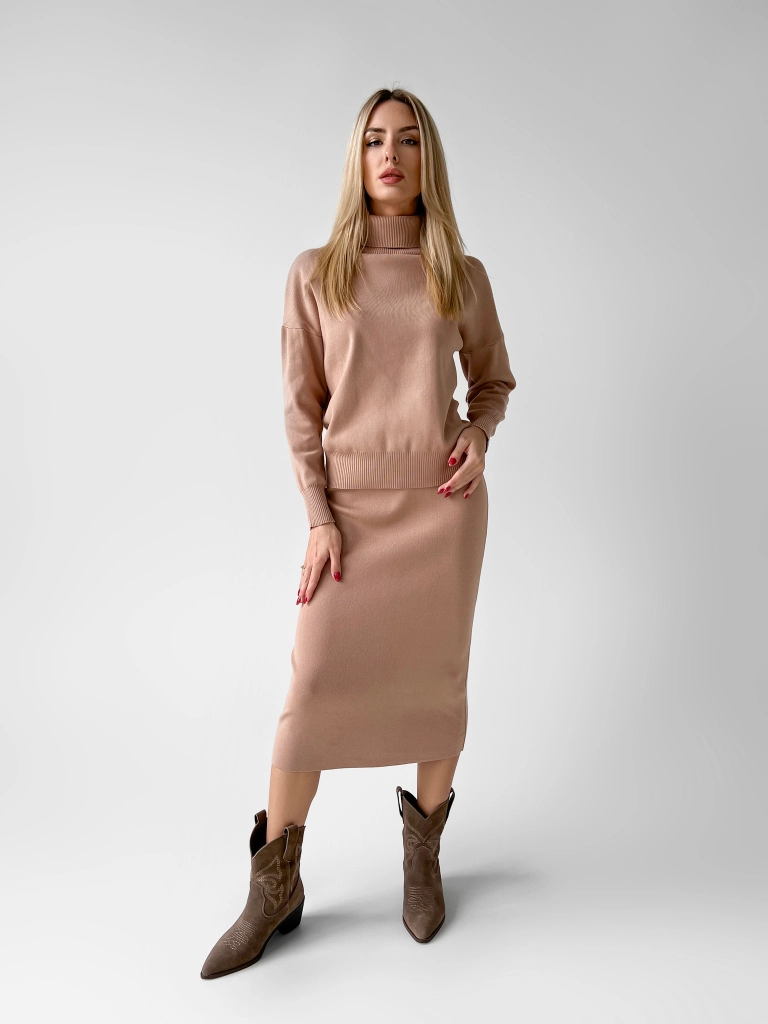 Костюм из свитера под горло на манжете и удлиненной юбки на резинке