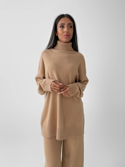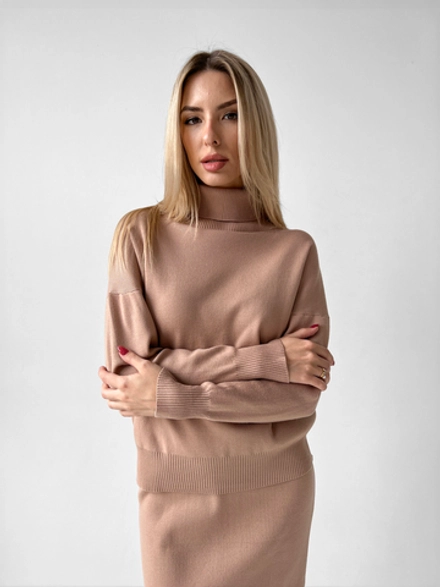Женский костюм трикотажный из свитера под горло на манжете и...