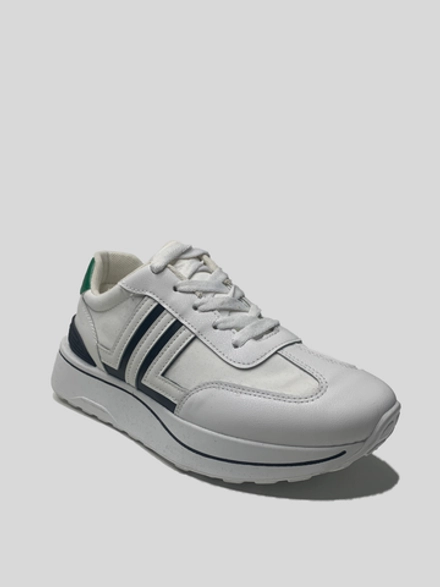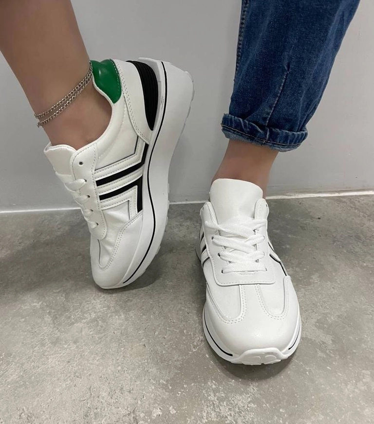 Женские кроссовки Shems 67-1из кожзама и текстиля с зелеными вставками...