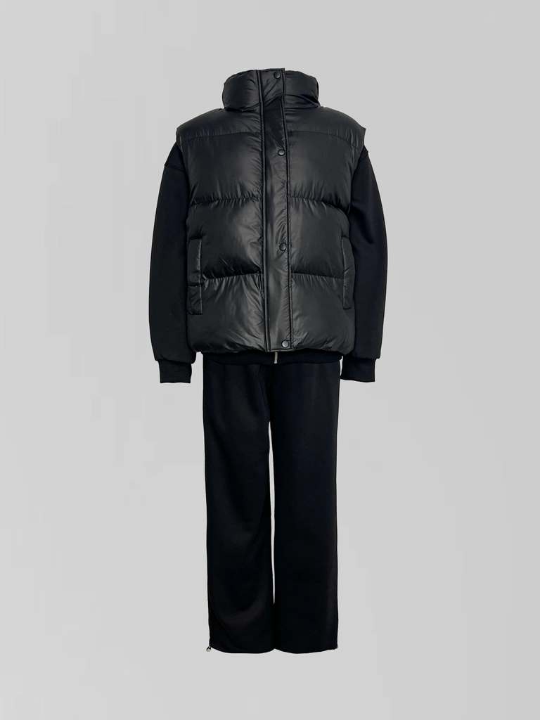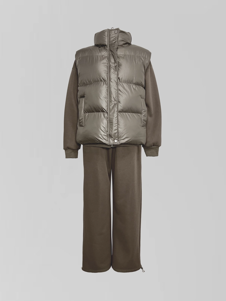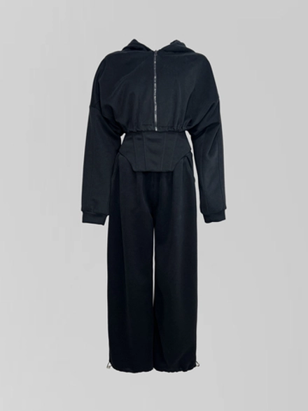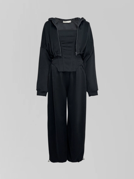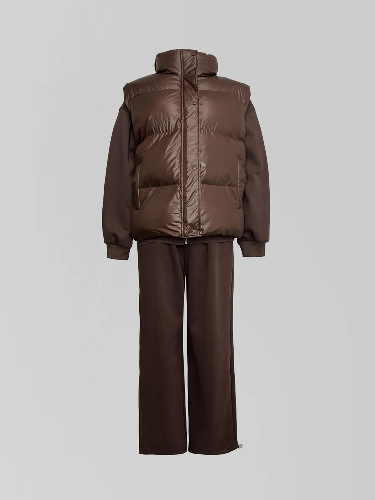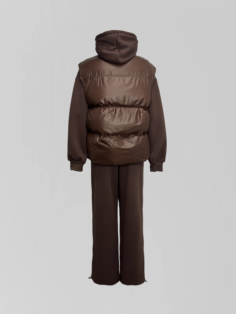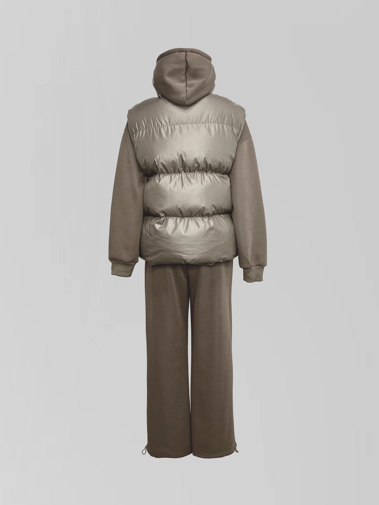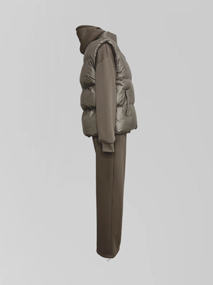 Спортивный костюм-тройка 23367 из зип-кофты, прямых штанов на кулиске и жилета