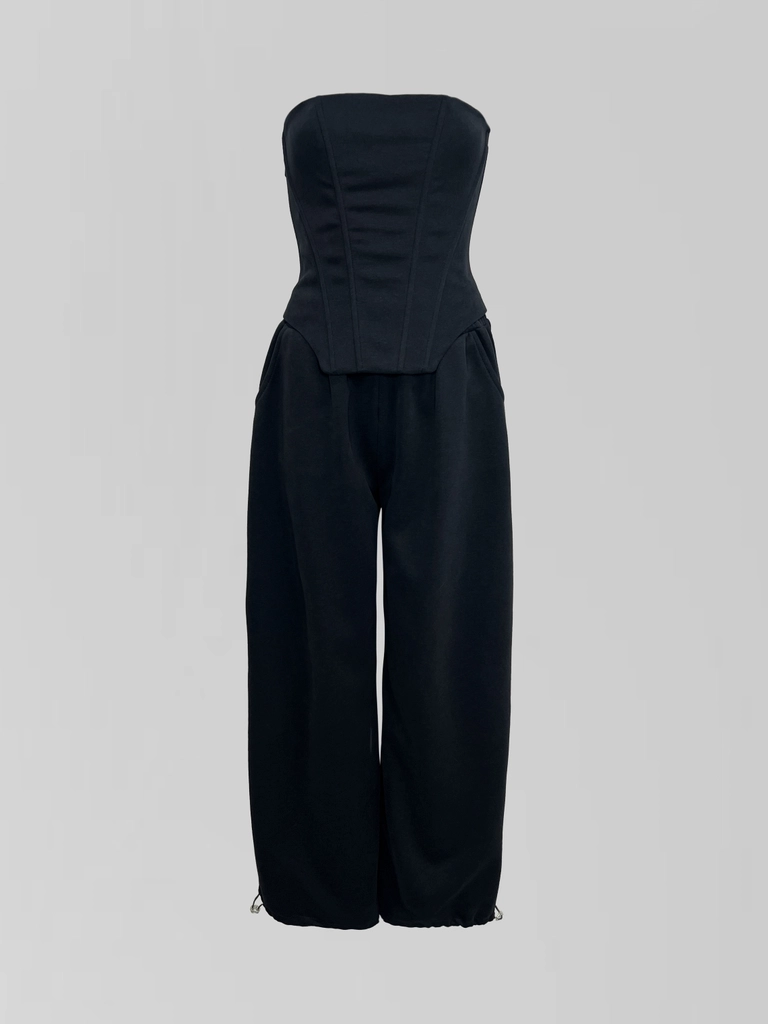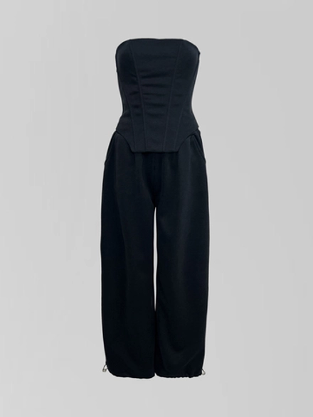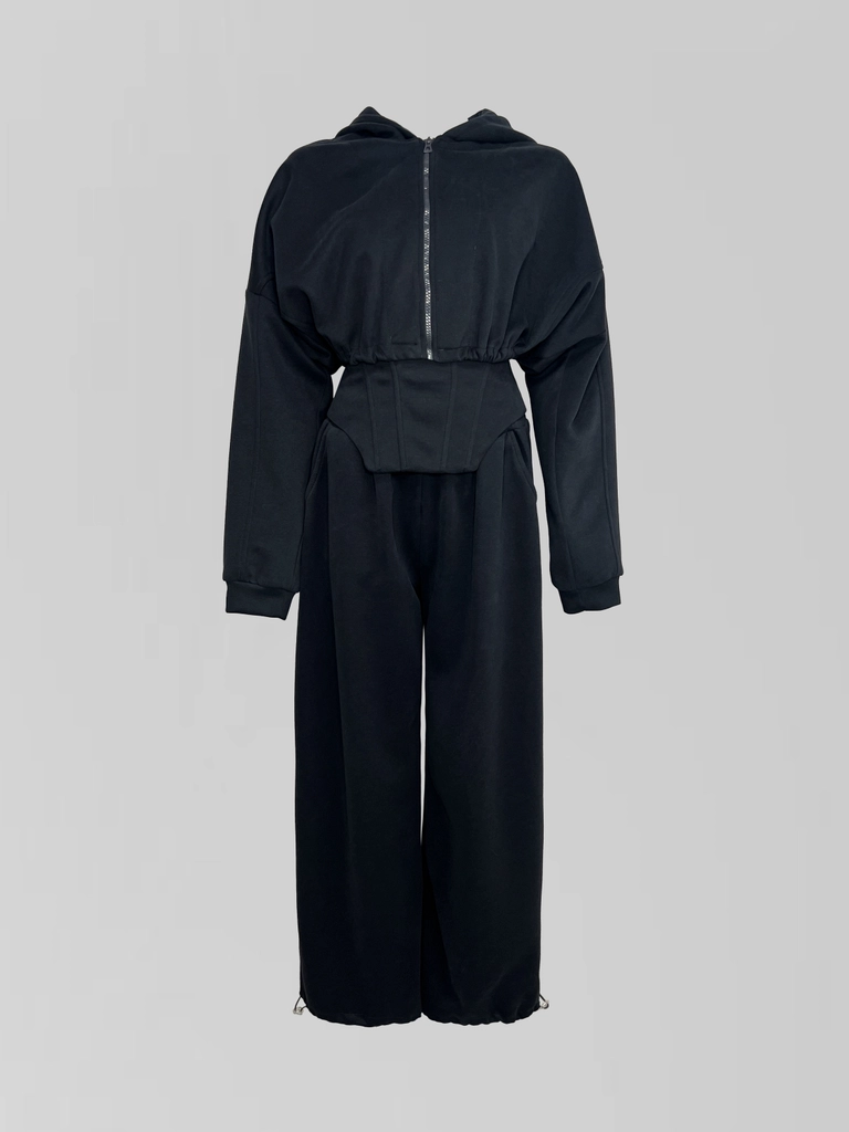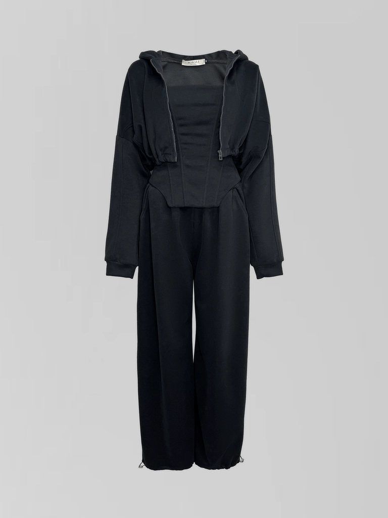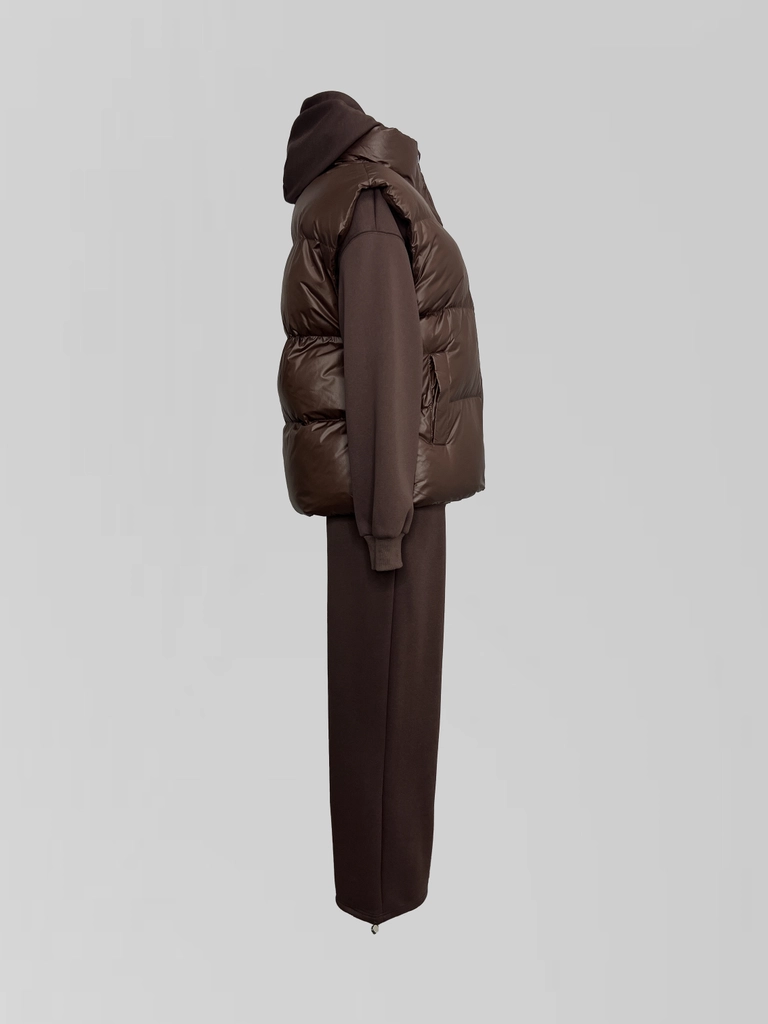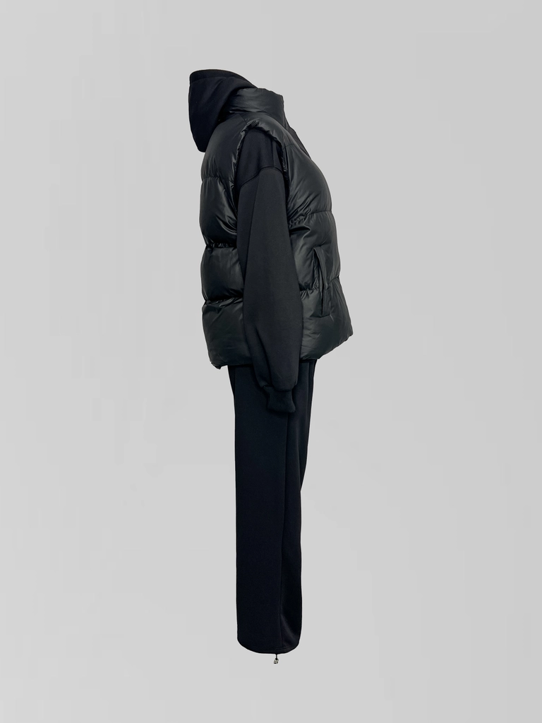 Спортивный костюм-тройка 23367 из зип-кофты, прямых штанов на кулиске и жилета