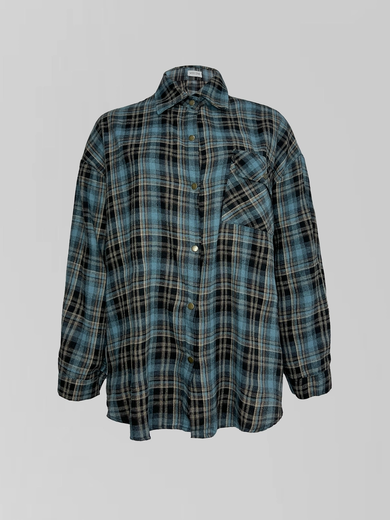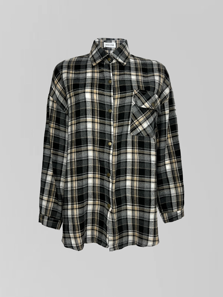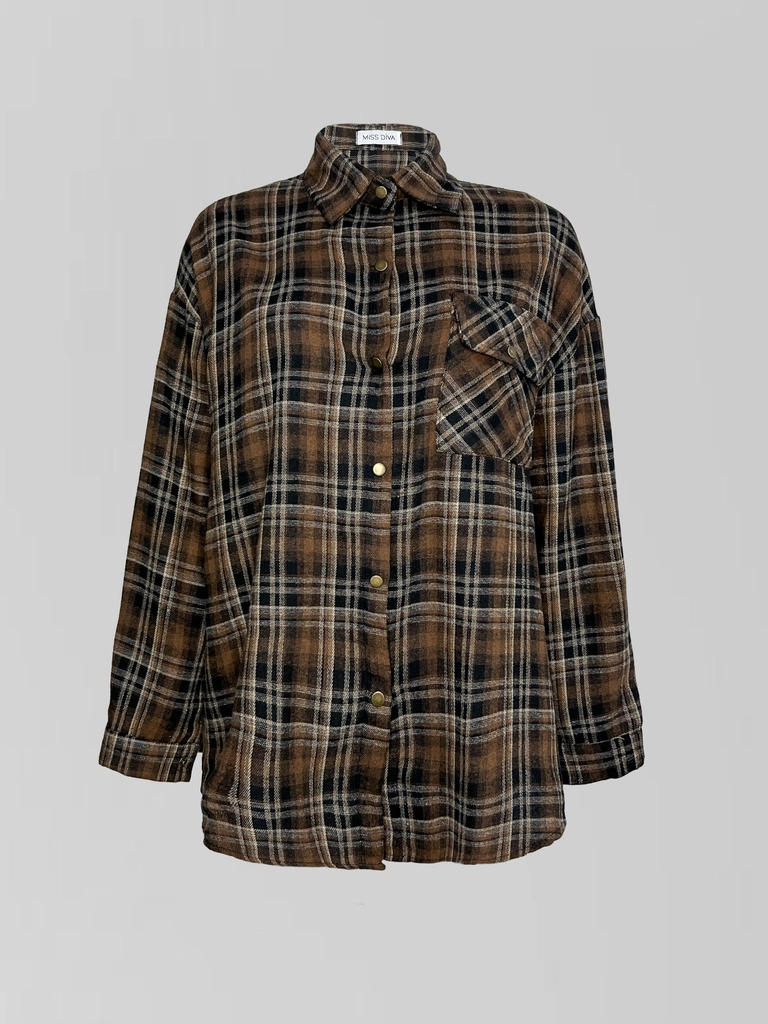 Рубашка Miss Diva 11012 в клеточку на кнопках с карманом на груди
