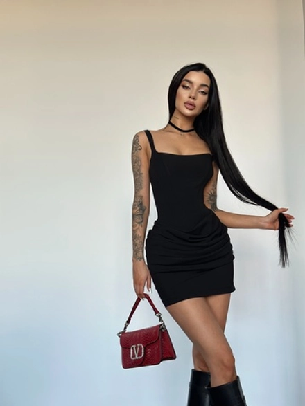 Платье Agdali Brand 1051 короткое однотонное на лямках со шнуровкой на спине