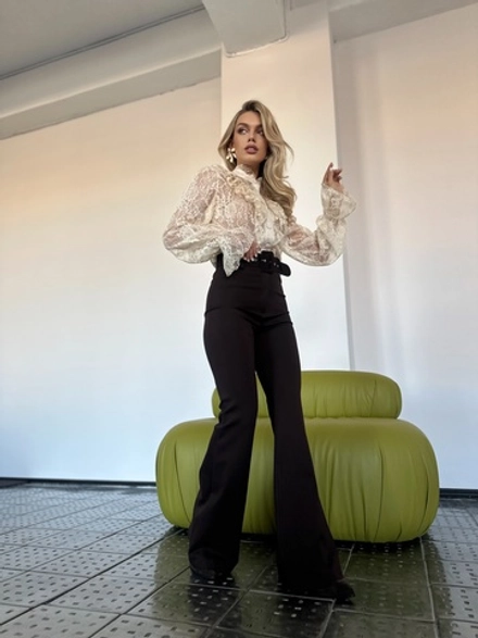 Блузка AYA collection однотонная кружевная на пуговицах с рюшами