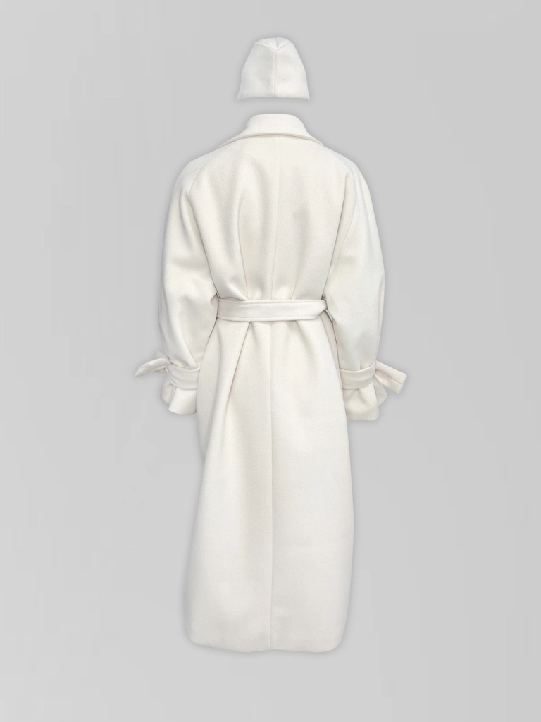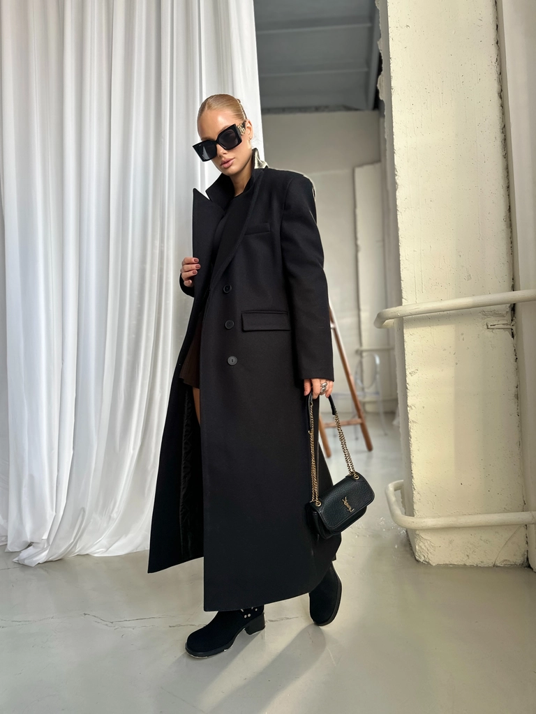 - изделия в стиле оверсайз длиной в пол с расширенной линией плеча, большим воротником и широкими свободными рукавами;