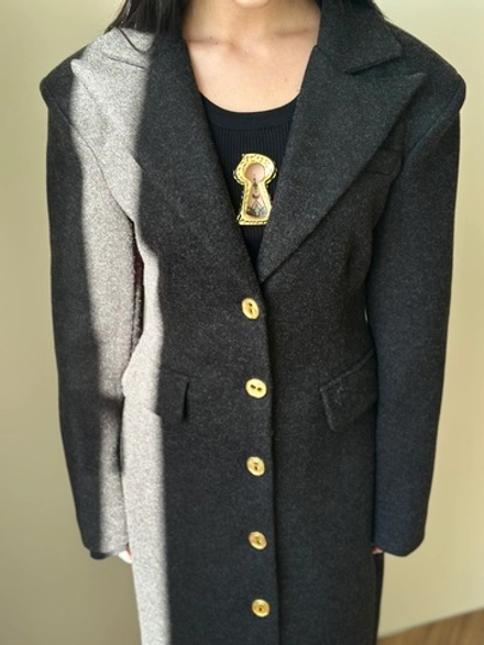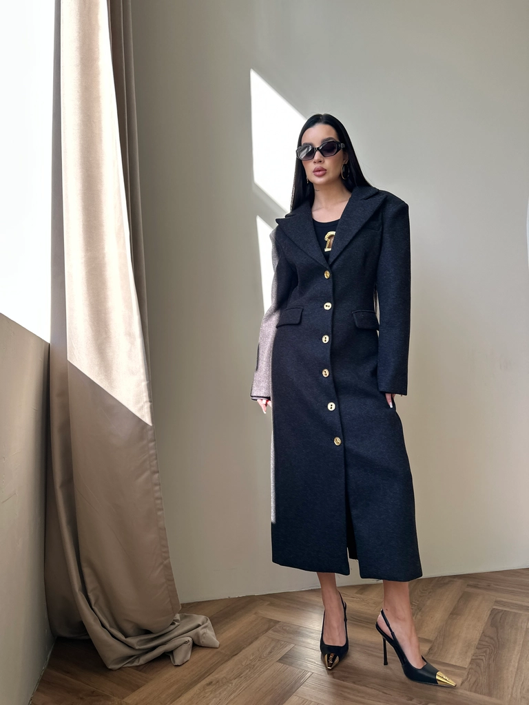 Пальто приталенное на золотых пуговицах с карманами