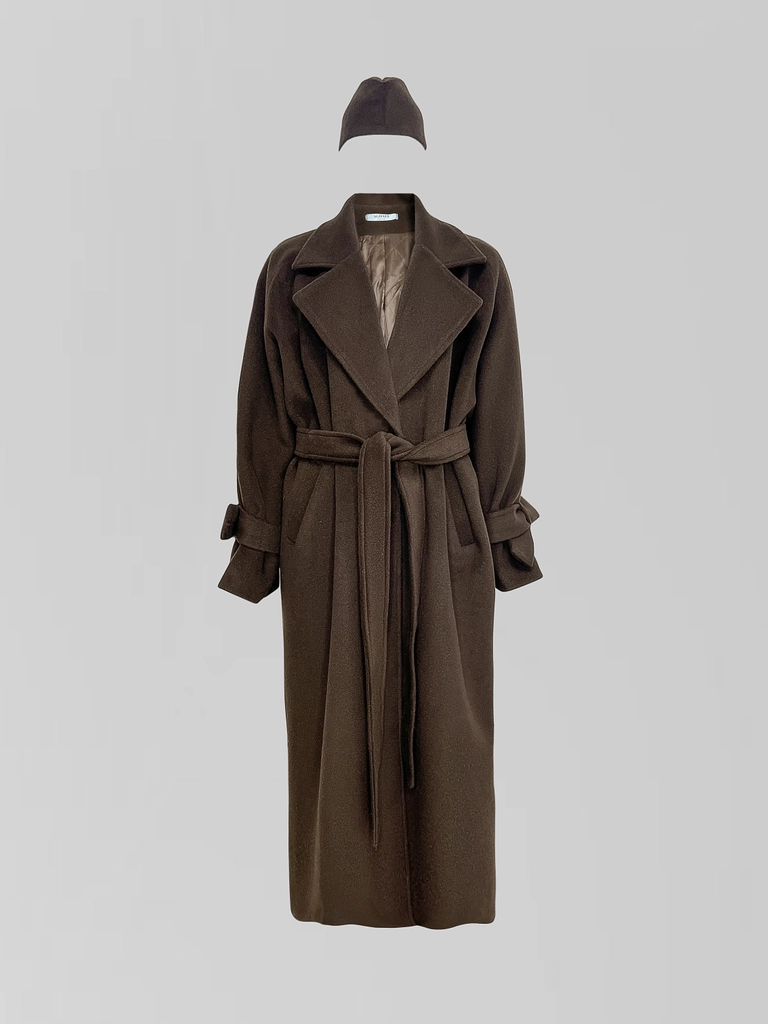 - изделия в стиле оверсайз длиной в пол с расширенной линией плеча, большим воротником и широкими свободными рукавами;