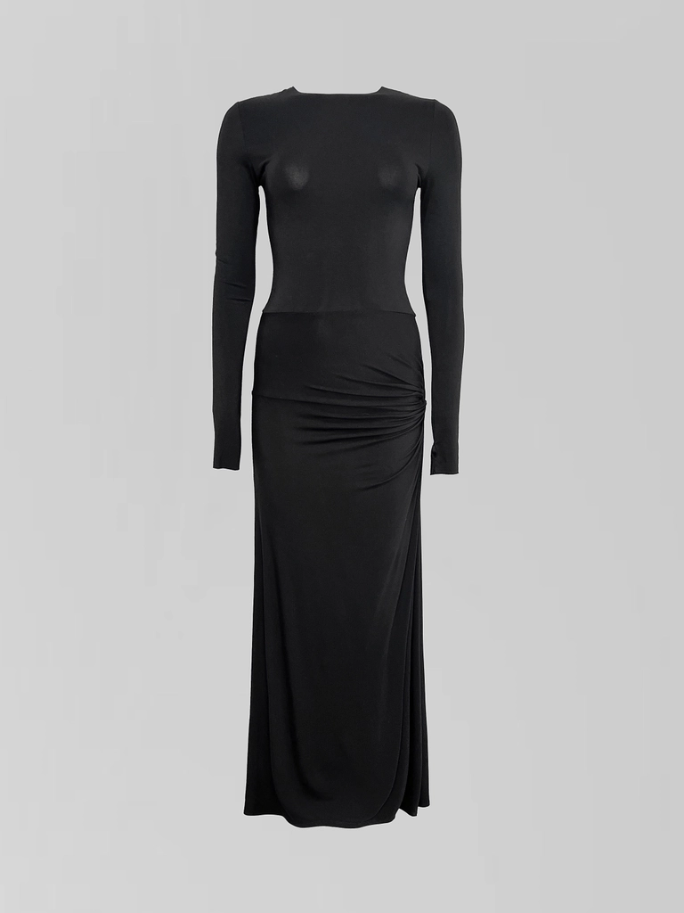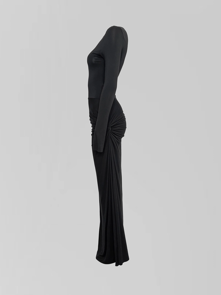 - Длина в пол – беспроигрышный вариант для модниц любого возраста. В зависимости от особенностей фигуры можно выбрать облегающую или свободно ниспадающую модель.