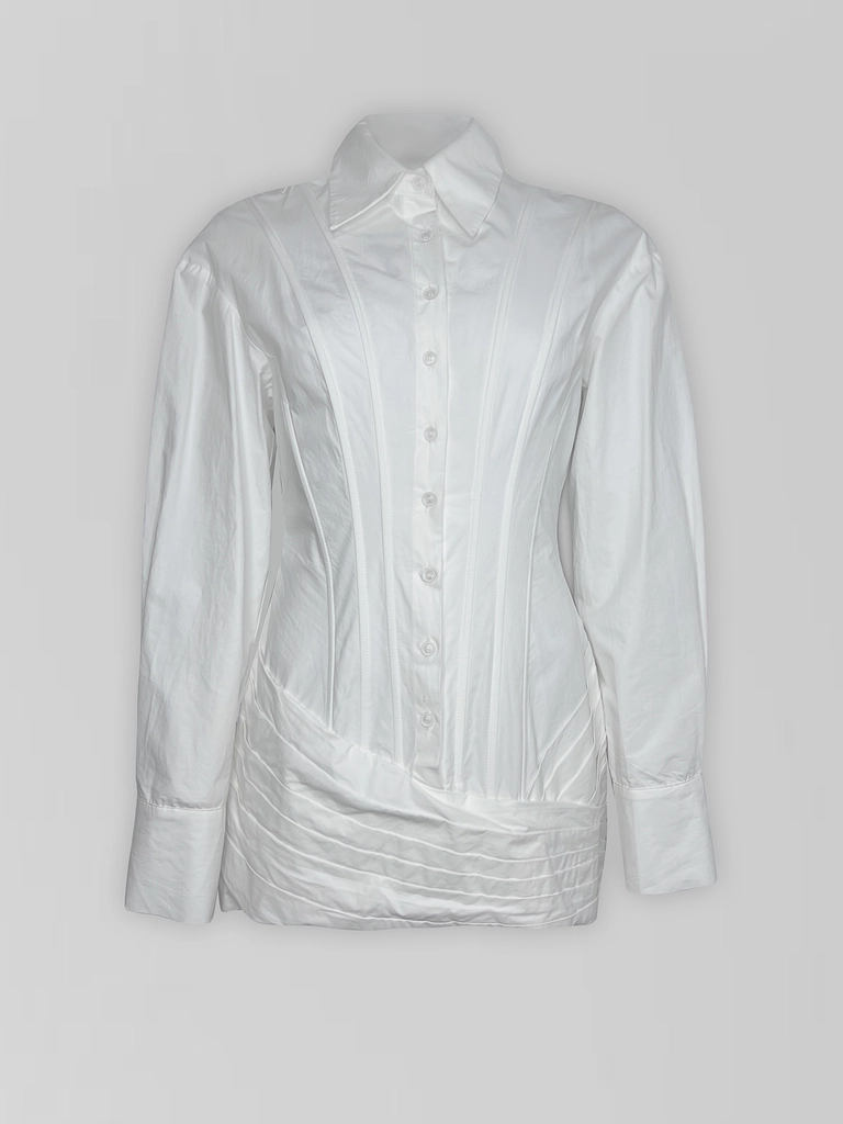 - Асимметрия – оптимальный компромисс для тех, кому нравится носить одновременно длинное и короткое. Причем асимметричный крой касается не только юбки, но и верха.