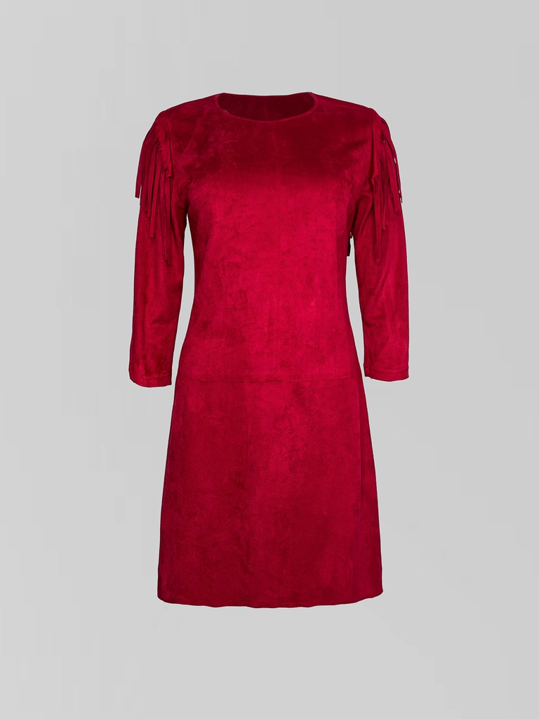 Платье Isabel 651 однотонное замшевое с бахромой на рукавах