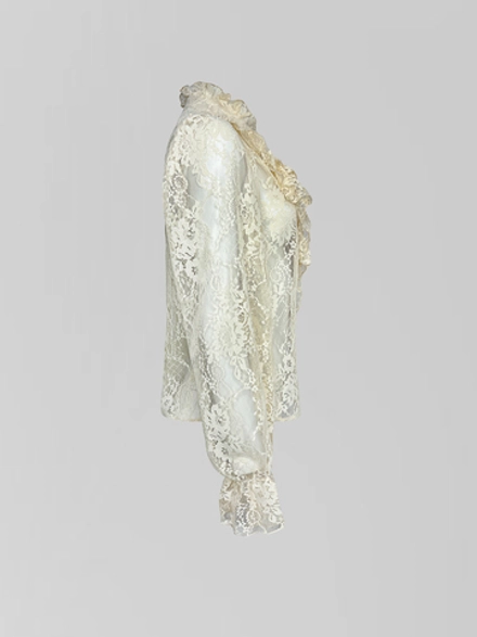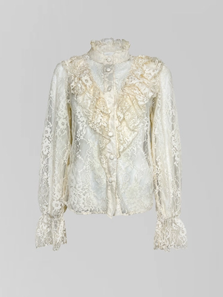 Блузка AYA collection однотонная кружевная на пуговицах с рюшами