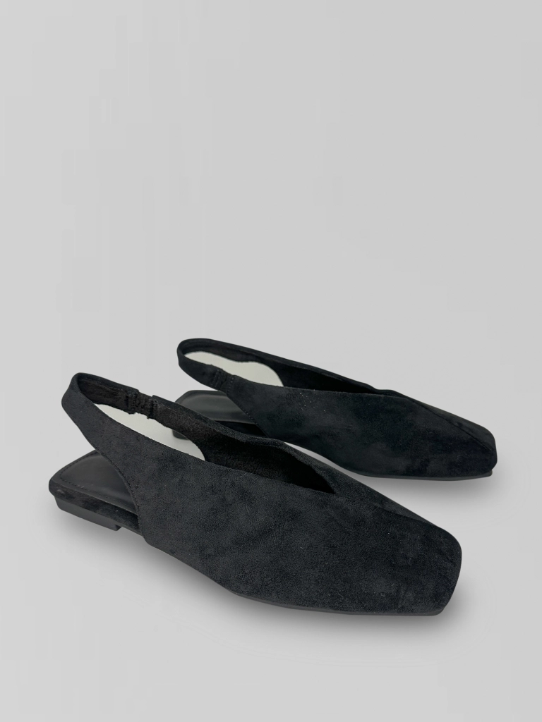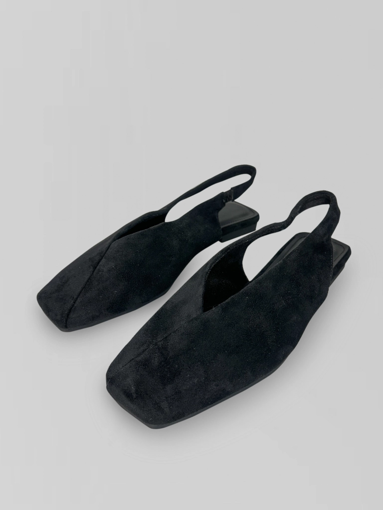 - С закрытой пяткой и открытым носком, зауженным или квадратным. Такая комфортная обувь с фиксацией задней части стопы подойдет тем, кто долгое время проводит на ногах.