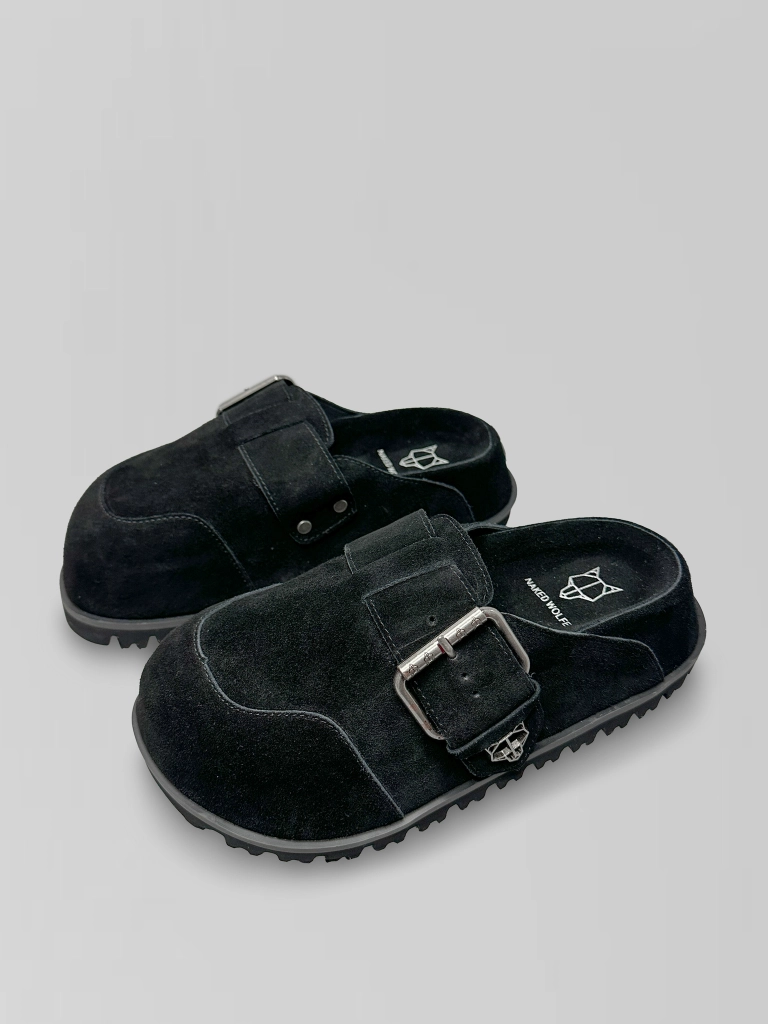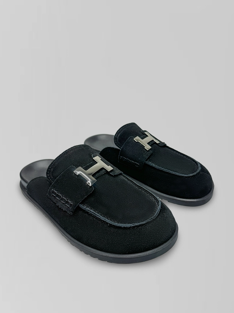 - Мюли – остроносые модели без пятки, напоминающие восточные туфли. Стильные модели для создания потрясающих уличных и пляжных луков, украшенные ярким декором в виде металлических пряжек или контрастных вставок. Недаром многие модницы стремятся купить женские шлепанцы этого типа для пляжного отдыха или поездки на курорт.