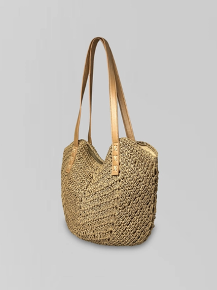 Уникальная сумка-хобо соломенная с вышитыми крестиками на ручках - идеальный...