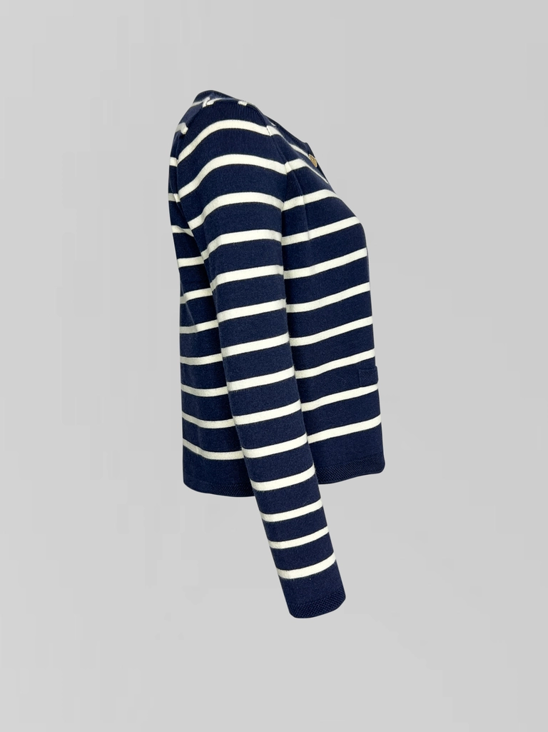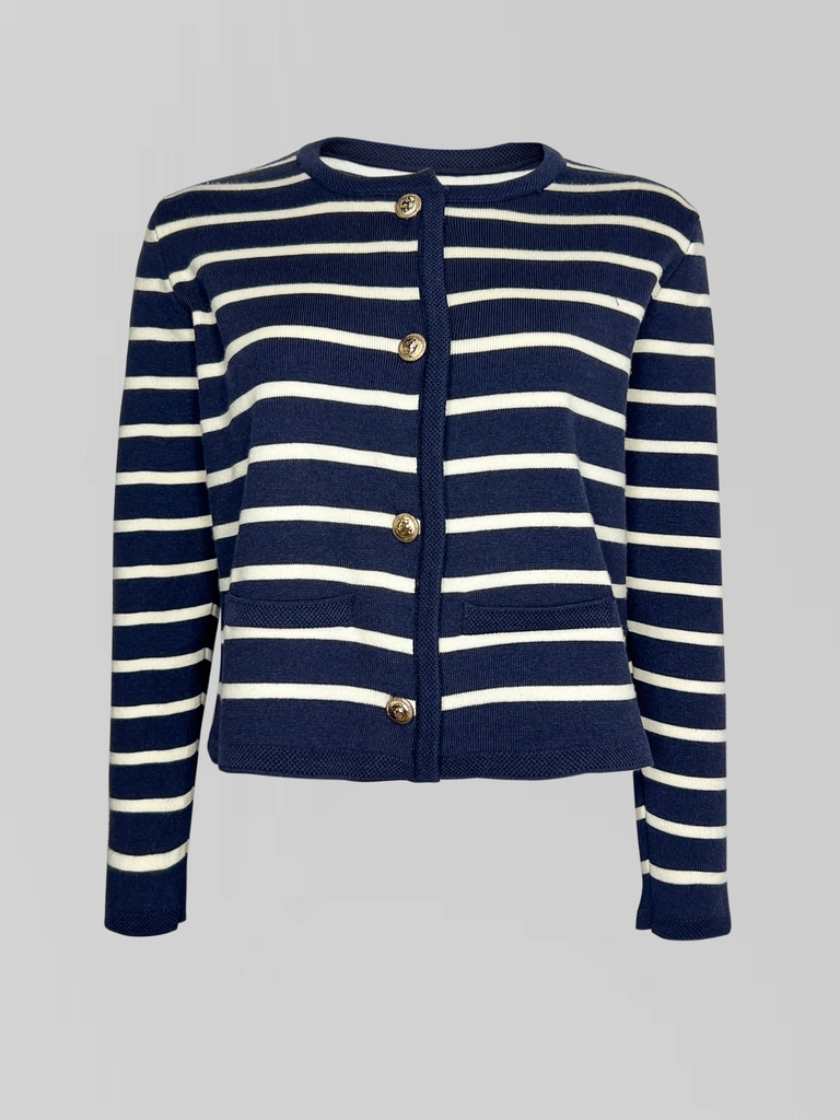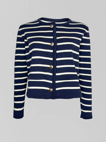 Кардиган F7639-3 в полоску с длинным рукавом на пуговицах