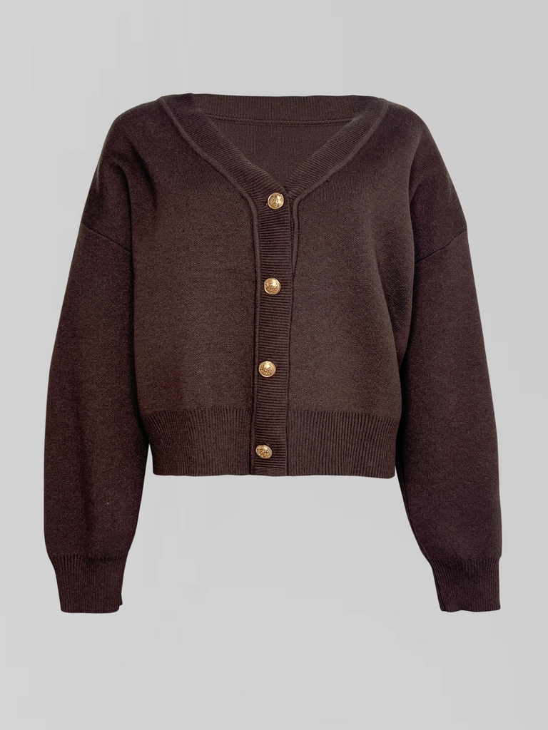 Кардиган 648 однотонный на пуговицах с V-образным вырезом