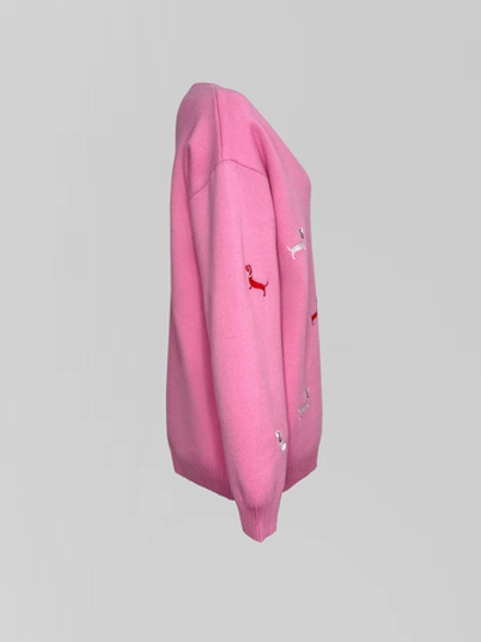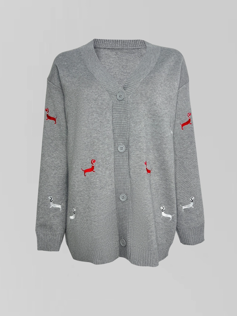 Кардиган Sora 80824 удлиненный на пуговицах с принтом таксы