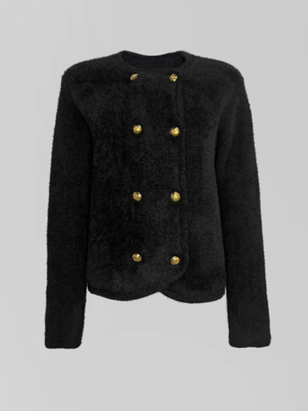 Кардиган 641 пушистый однотонный на золотых пуговицах