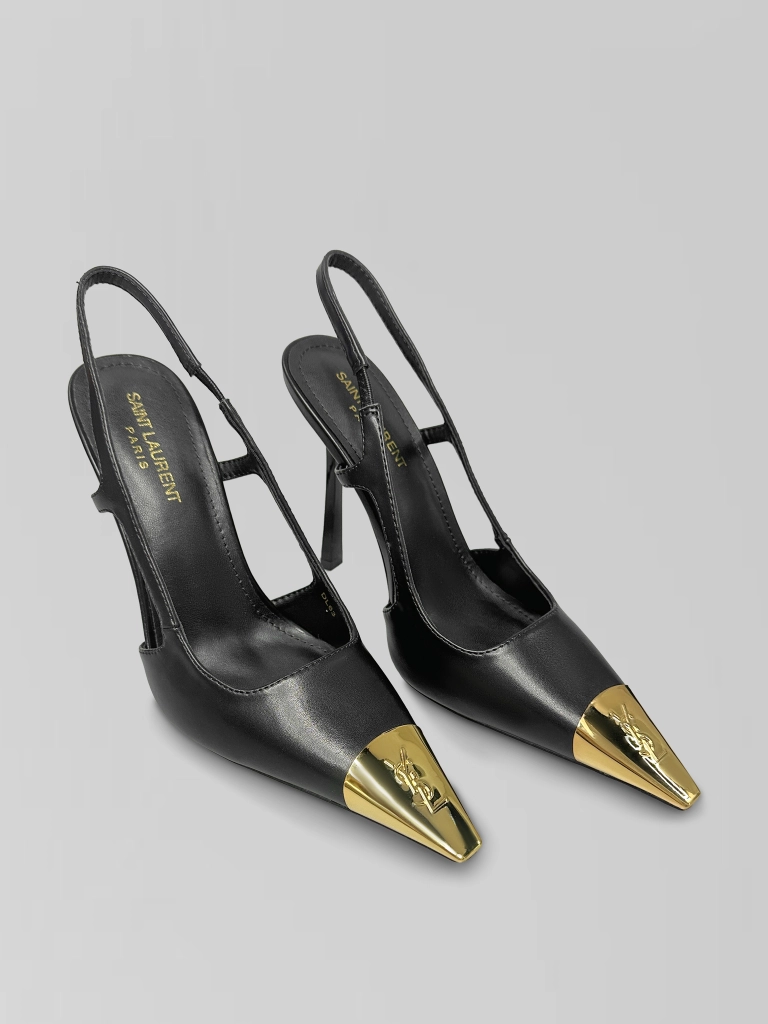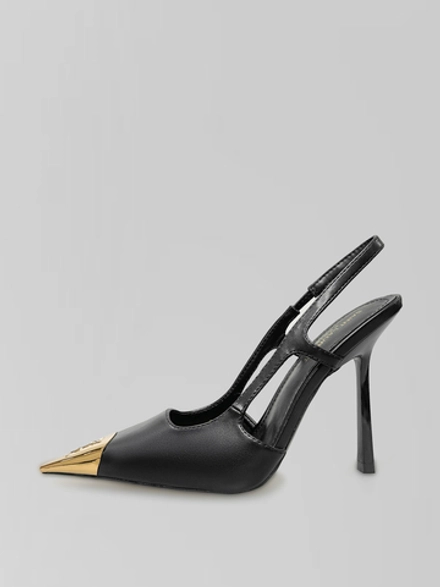Туфли-лодочки DL63 с открытой пяткой на шпильке и золотой вставкой