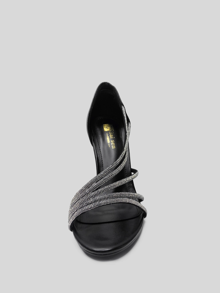 Босоножки Bai sen 518-2 со стразами с закрытой пяткой на тонком каблуке