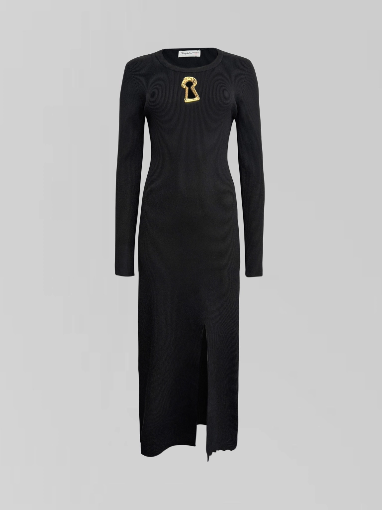 Платье 7026 однотонное в рубчик с металлической вставкой
