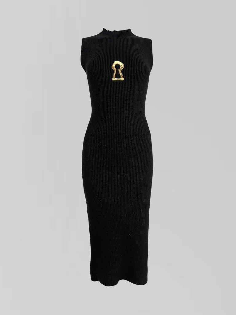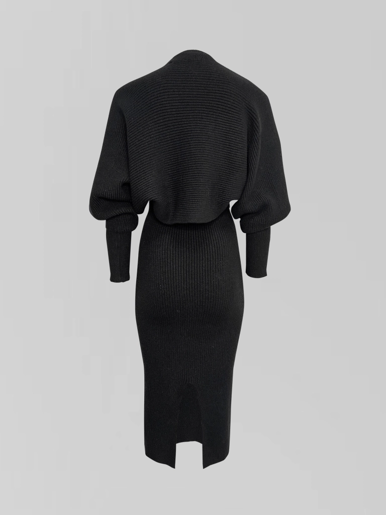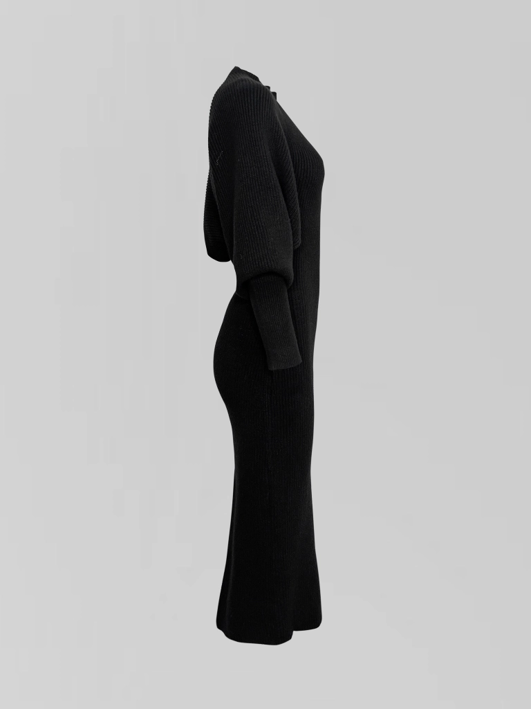 Платье вязаное без рукавов с металлической вставкой и болеро в комплекте