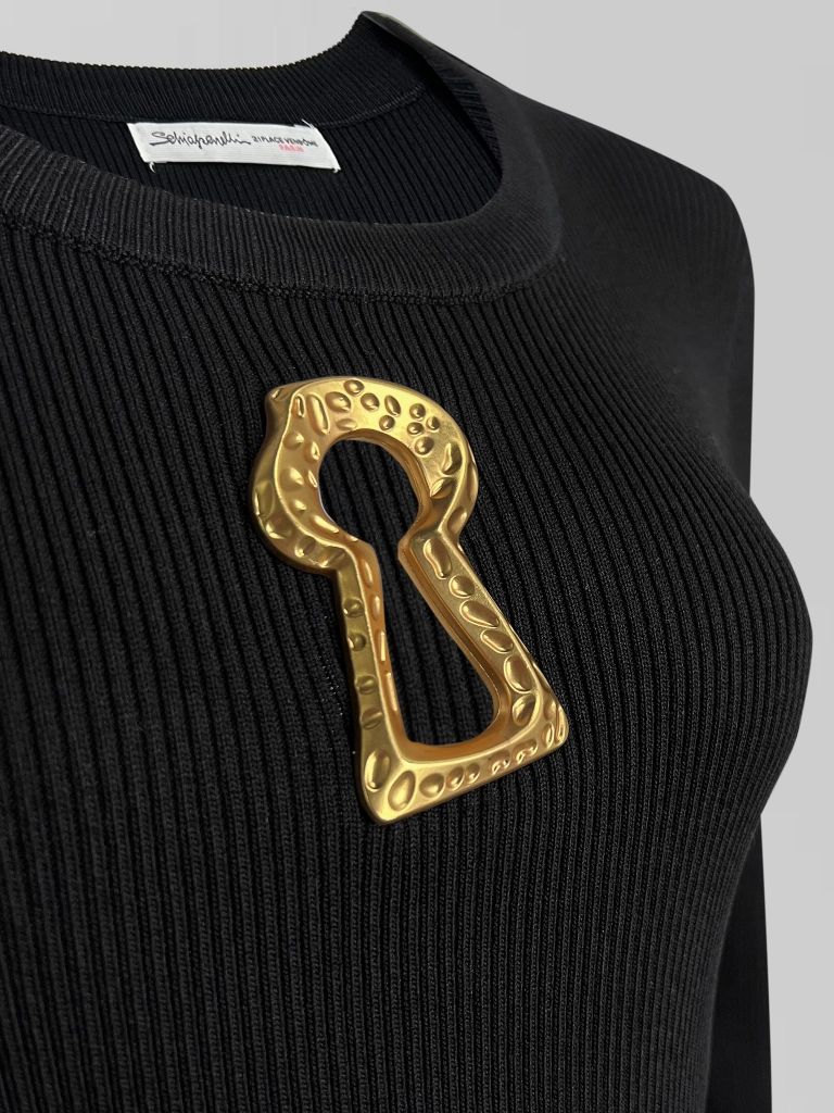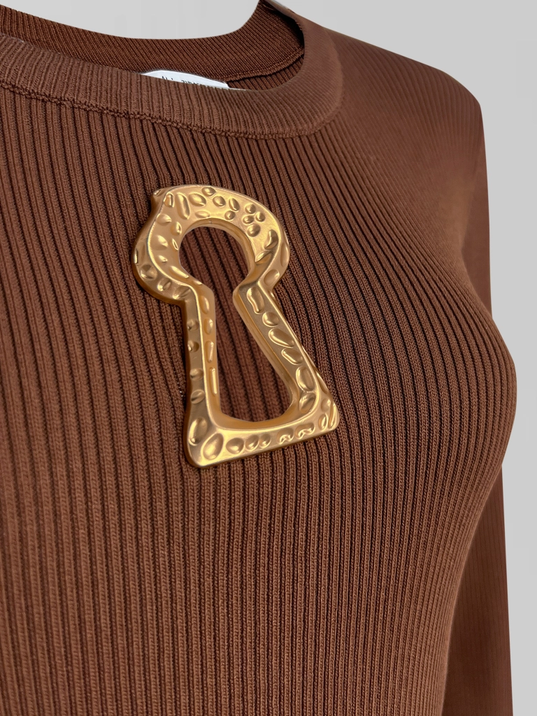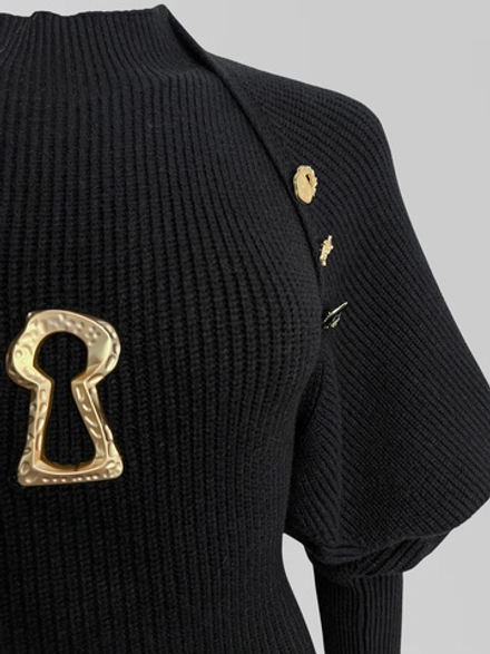 Свитер 7025 однотонный в рубчик с металлической вставкой