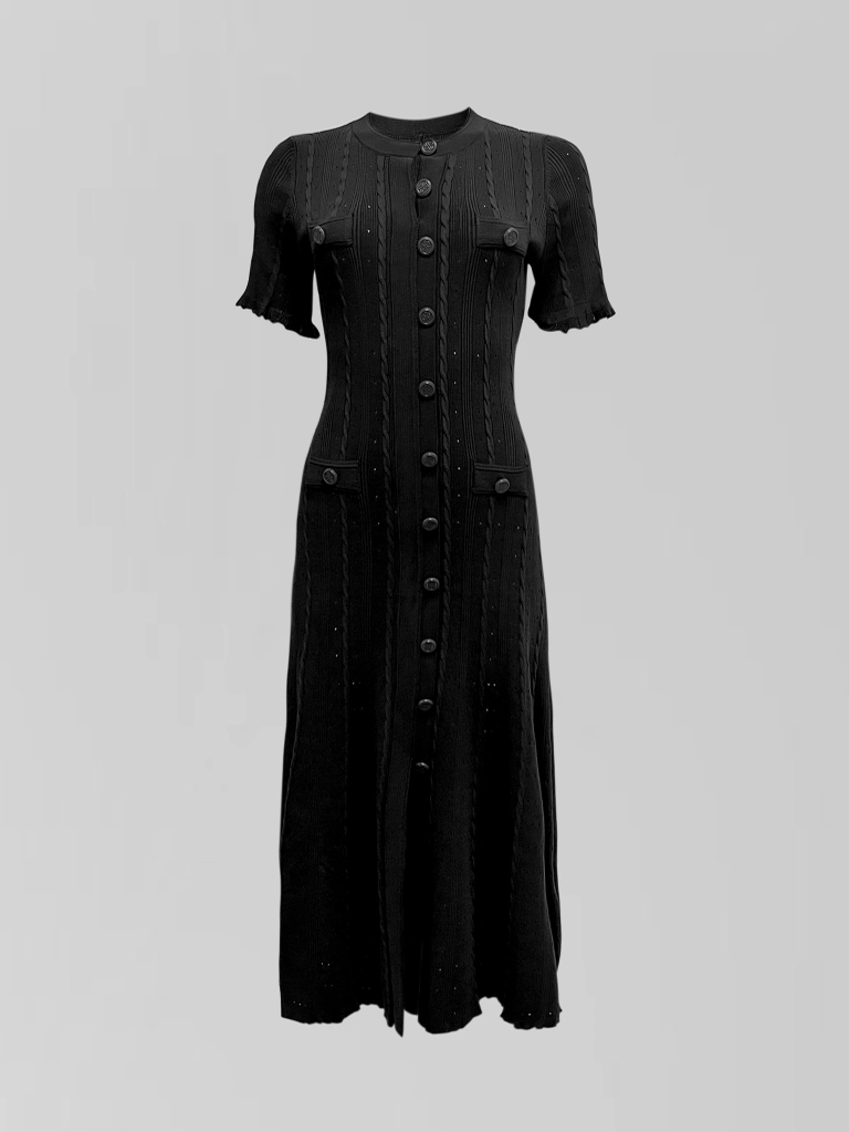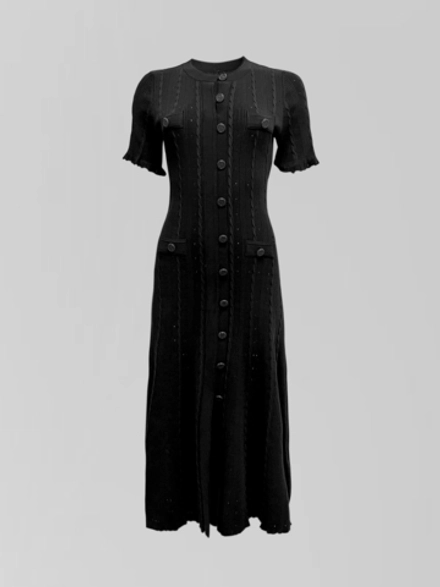 Платье 80659 трикотажное удлиненное на пуговицах и коротким рукавом