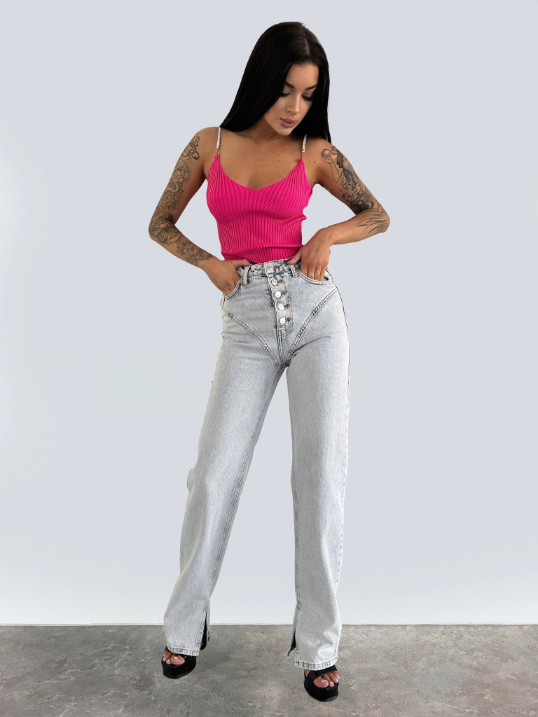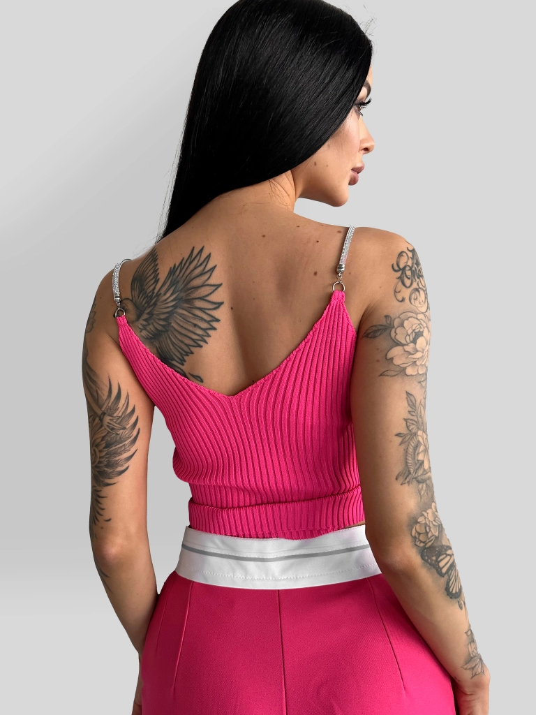 Топ лапша Rumera 1171 c V-образным вырезом на тонких лямках со стразами