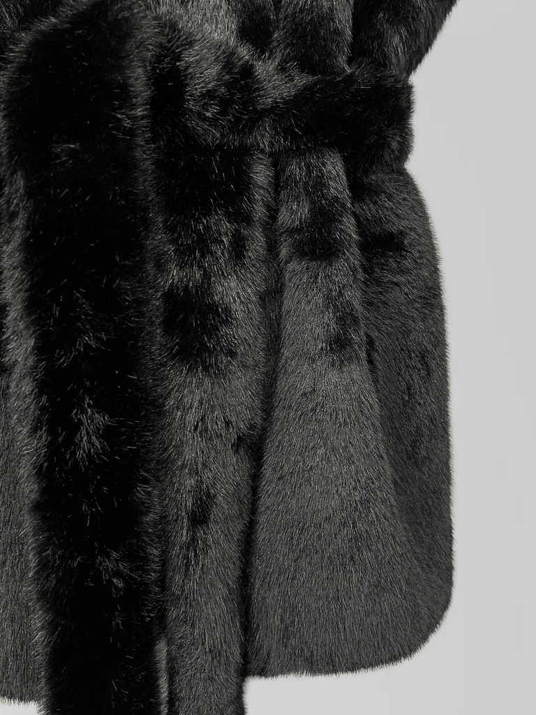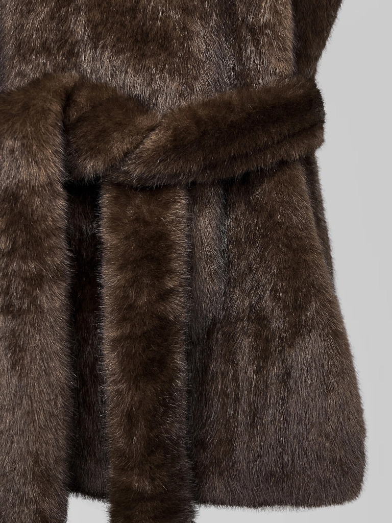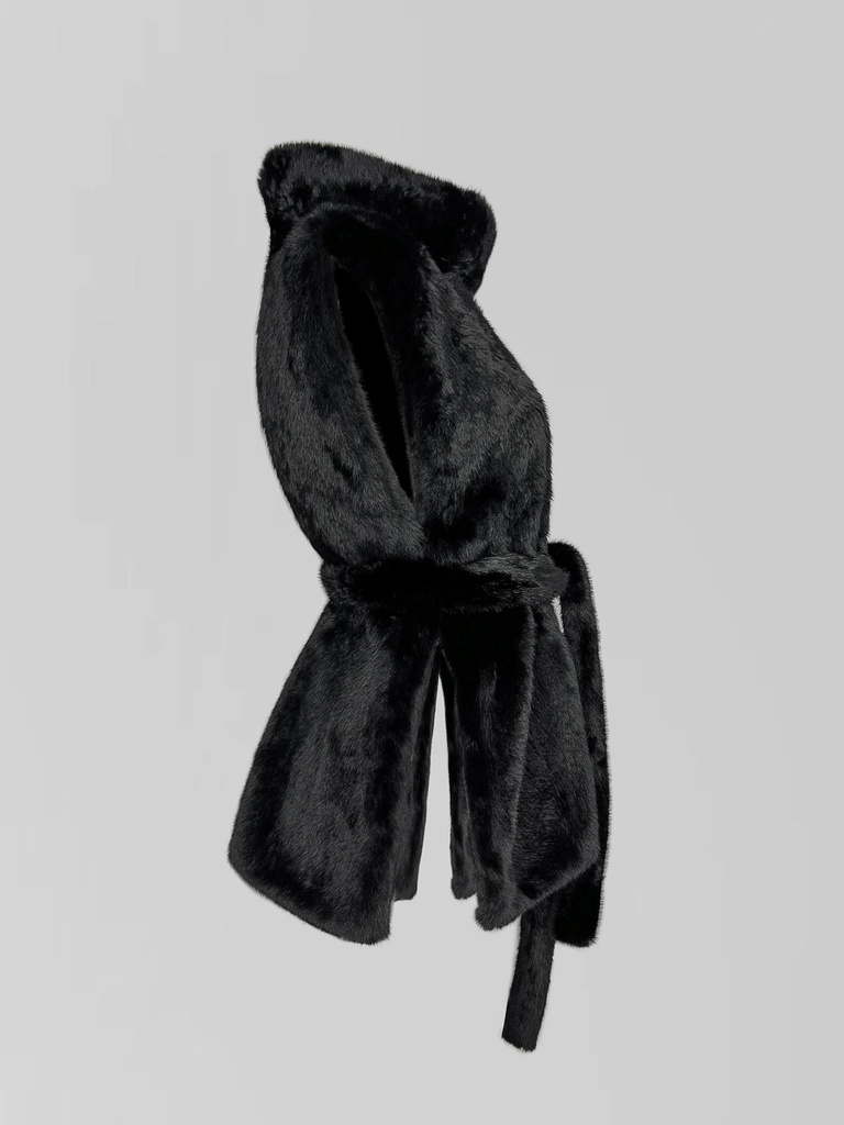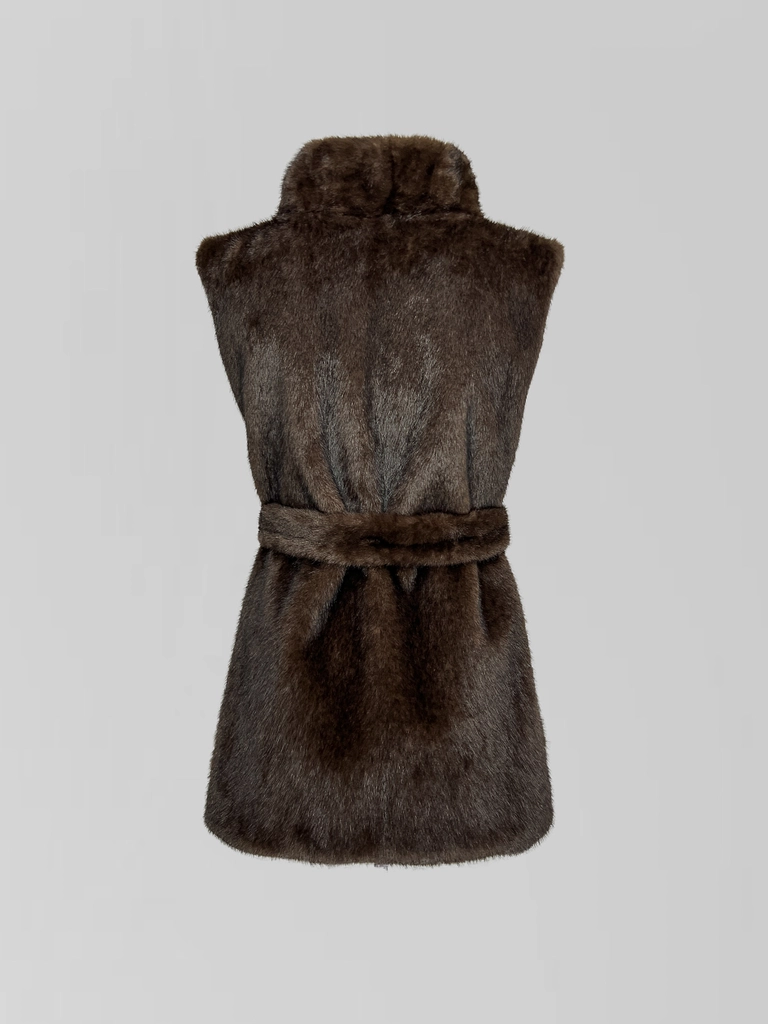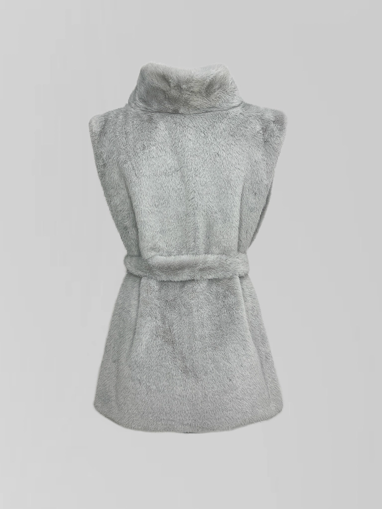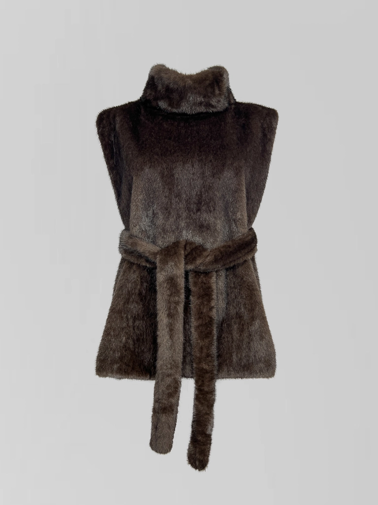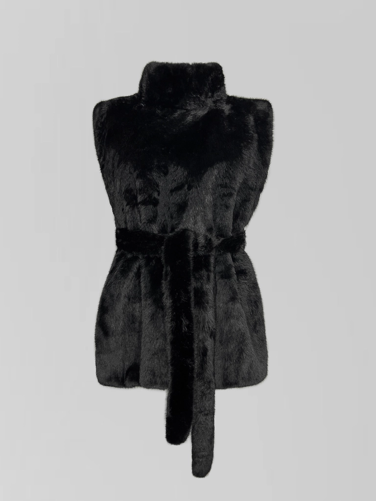 Жилетка Анжелика однотонная меховая с высоким горлом и поясом