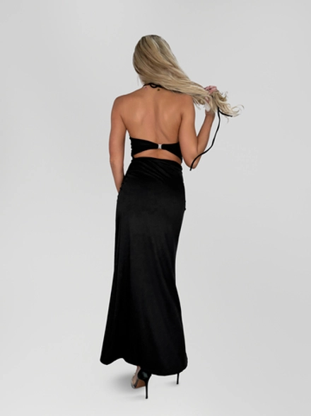 Платье Kikiriki 56696 длинное с вырезом на талии открытой спиной и разрезом спереди