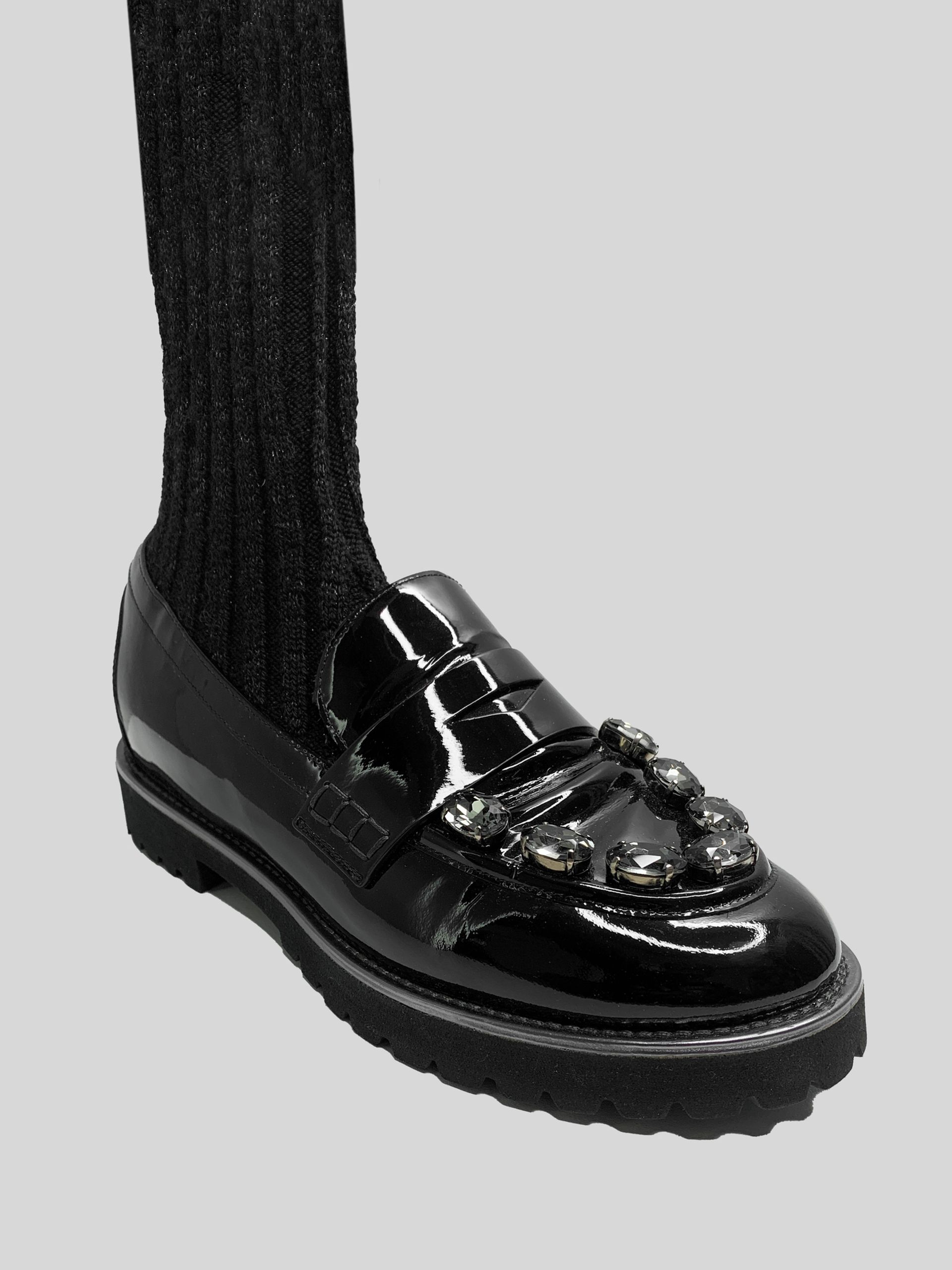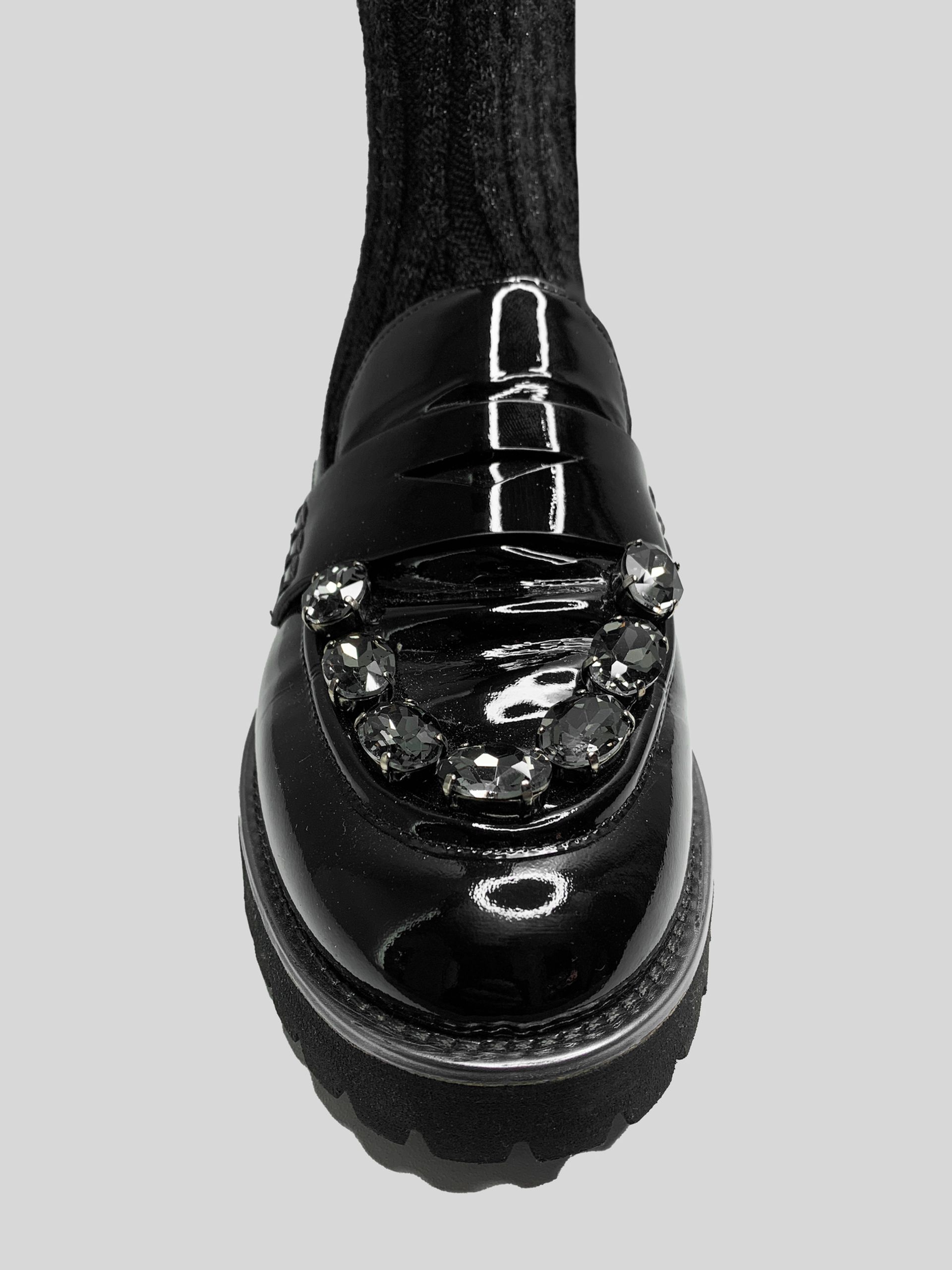 Ботинки-чулок Lemat 136 лаковые со стразами