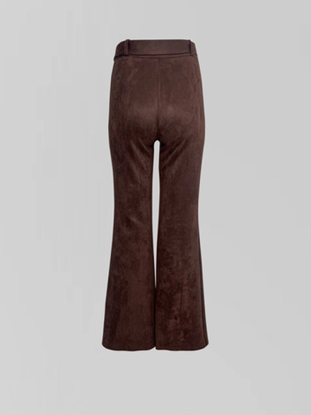 Движение — вот стихия этих брюк. Широкий клеш, раскрывающийся от колена, создает неповторимую пластику и динамику. Он не просто следует за шагом, а задает ему особый, летящий ритм. Завышенная линия талии бережно моделирует фигуру, даря ощущение собранности и элегантной поддержки. Высокое качество пошива и тщательная обработка швов гарантируют, что безупречная форма сохранится после множества примерок и движений.