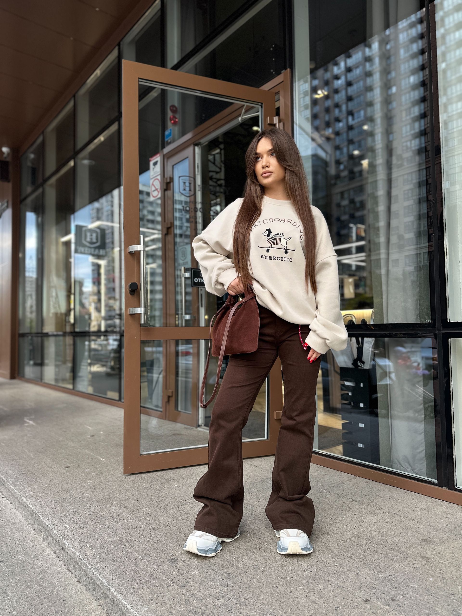 Эти джинсы родом из Кореи — не просто вещь, а тщательно выверенная концепция стиля. Модель с клешем от колена визуально вытягивает силуэт, придавая походке плавную грацию, а завышенная линия талии заботливо подчеркивает достоинства фигуры. Состав ткани, где хлопку составляет компанию эластичный спандекс, обеспечивает не только комфорт в движении, но и гарантирует, что форма изделия останется безупречной после множества сезонов носки.