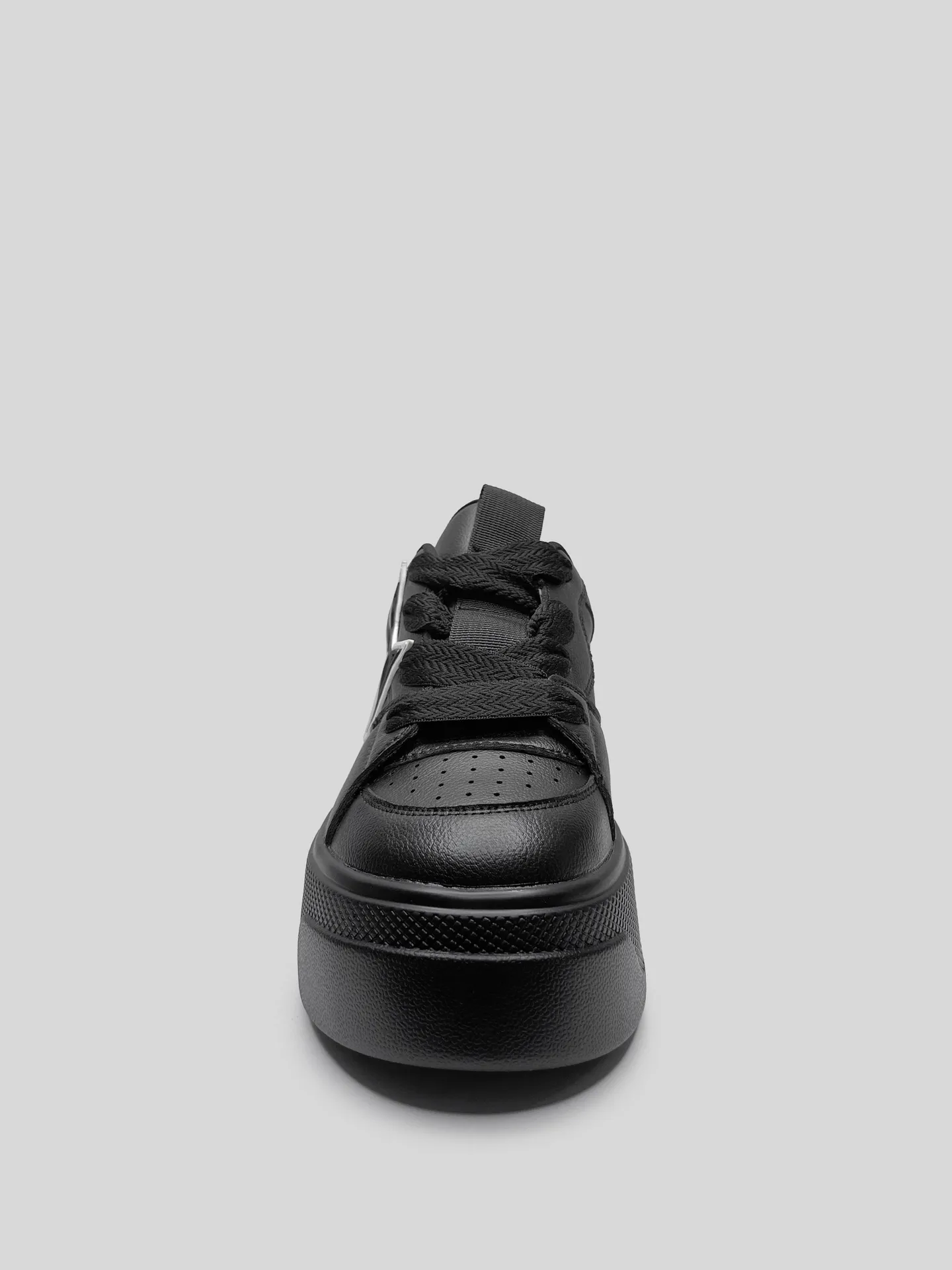 Кеды Naked Wolfe черные из экокожи на высокой подошве с широкими шнурками и нашивкой сбоку