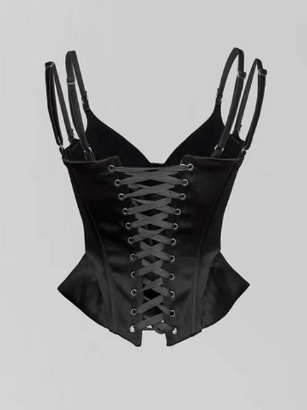 За силуэт, одновременно утонченный и уверенный, отвечает классическая шнуровка сзади. Она позволяет идеально адаптировать корсет по фигуре, создавая ощущение индивидуального пошива. Особый акцент — двойные регулируемые лямки. Эта деталь не просто функциональна, она придает образу стилистическую завершенность, позволяя варьировать глубину выреза и степень поддержки. Лямки надежно фиксируются, гарантируя, что вы будете чувствовать уверенность в каждом движении.