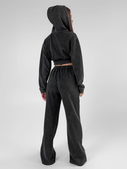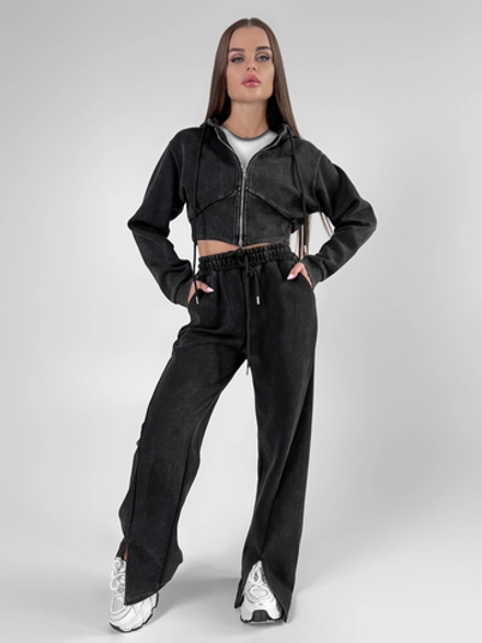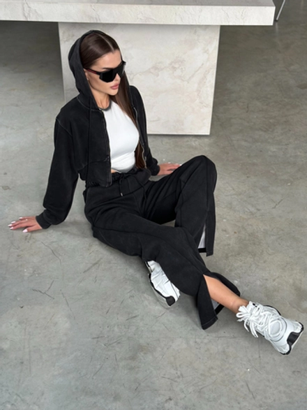 Комплектация продумана для тех, кто ценит практичность без ущерба стилю. Брюки на резинке не сковывают движения, а укороченный топ и толстовка создают лаконичный силуэт, который легко комбинировать с другой спортивной одеждой. Однотонное исполнение добавляет образу собранности — такой костюм не выглядит нарочито casual, но и не требует особых усилий в сочетании.