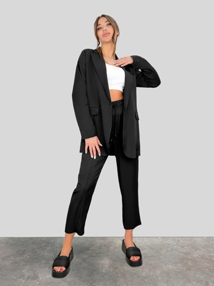 Женский костюм Lefon 130432 однотонной вискозы, пиджака с застежкой на одну пуговицу, карманами и укороченными штанами с талией на резинке