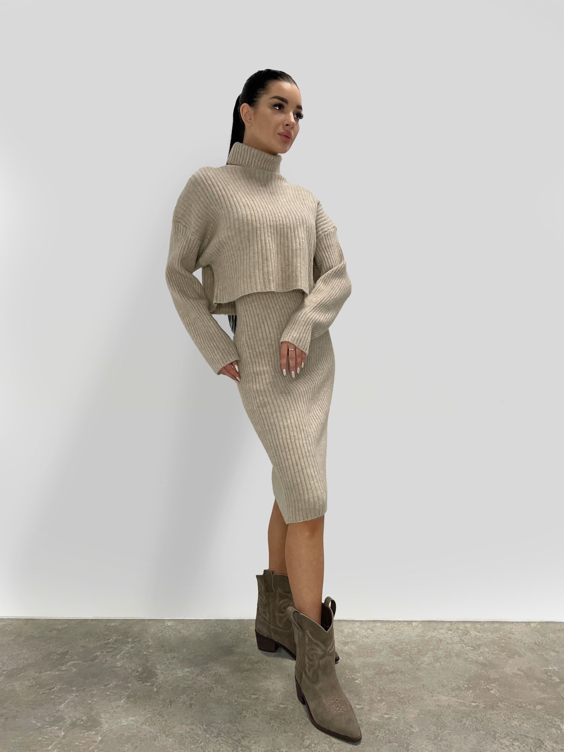 Костюм трикотажный LJHY 01 из прямого платья и укороченного свитера с горлом