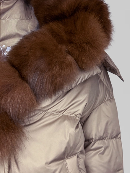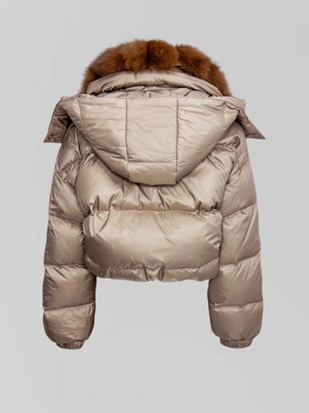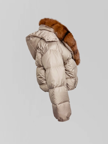 Материал, в основе которого лежит пух, отвечает за сохранение тепла, не утяжеляя куртку. Деталью, подчеркивающей статус модели, служит капюшон с мехом песца. Он не только добавляет образу выразительности, но и функционально дополняет куртку, надежно защищая от непогоды. Продуманная кулиска по нижнему краю позволяет регулировать посадку, обеспечивая еще больший комфорт.