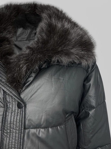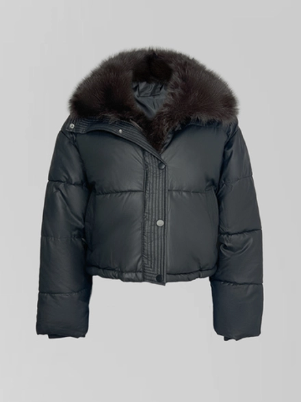 Отличительной чертой куртки стал отстегивающийся меховой воротник, который позволяет мгновенно менять ее облик — от строгого до более уютного и камерного. Дополнительную собранность силуэту придает регулируемая кулиска по низу изделия. Застежка, комбинирующая молнию и ряд кнопок, обеспечивает надежную посадку по фигуре и подчеркивает аккуратный вид модели.
