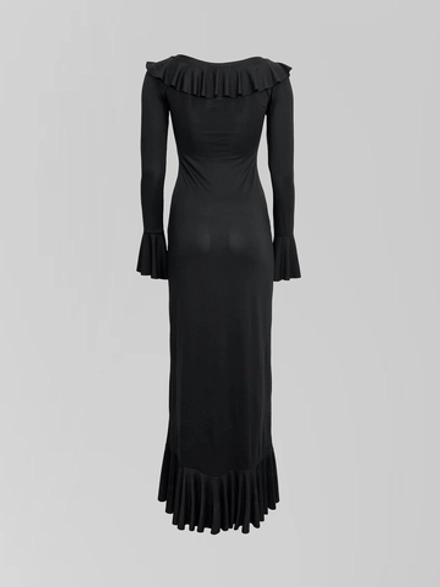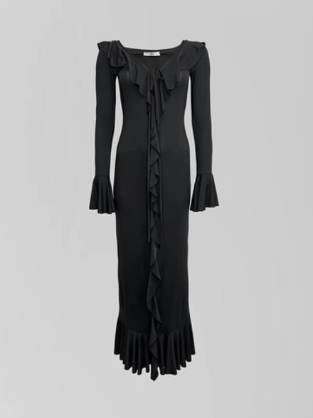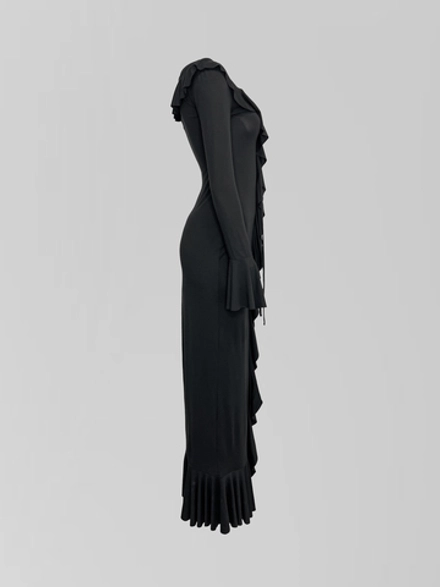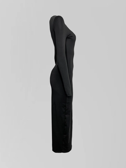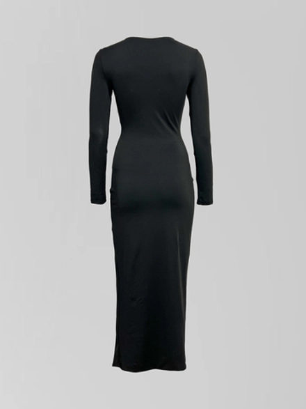 Это платье создано для ценителей универсального стиля, легко трансформируясь из повседневного в вечерний вариант. Удлиненный силуэт и длинные рукава делают его уместным как летним вечером, так и в демисезонный период. Основой служит плотный полиэстер, выбранный за его способность долго сохранять безупречную форму и свежий вид.